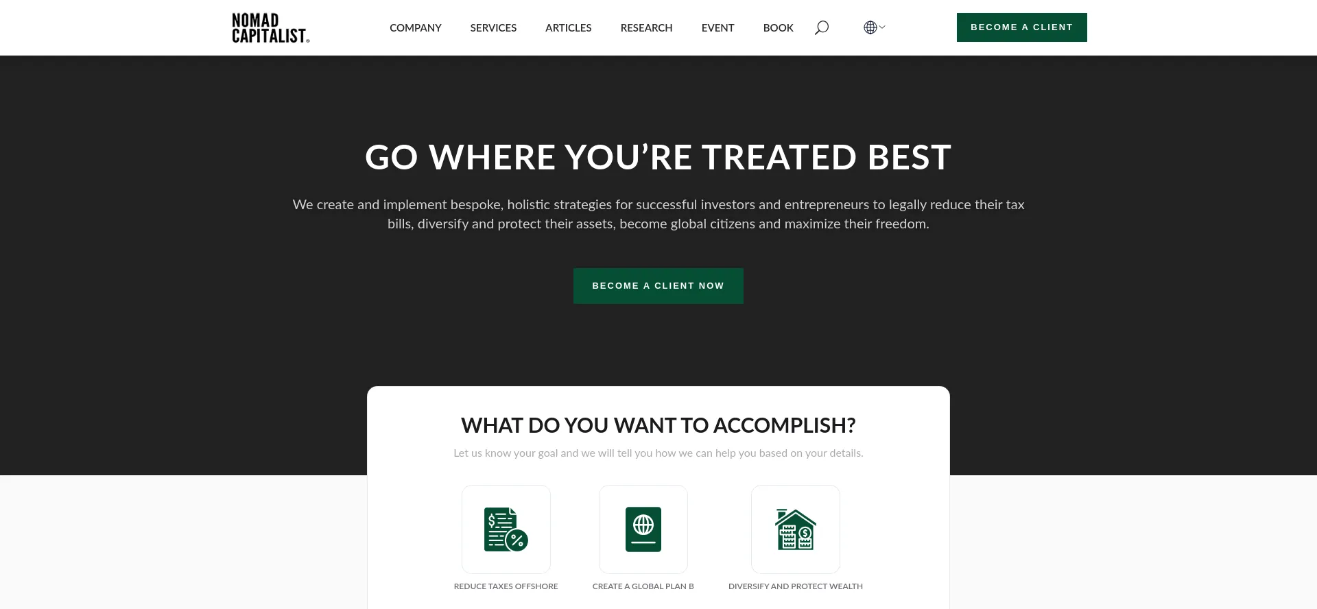 The nomadcapitalist.com website provides financial services including investment management, wealth advisory, or financial planning solutions. Services may encompass portfolio management, investment opportunities, financial consulting, or asset growth strategies for individual and institutional clients.