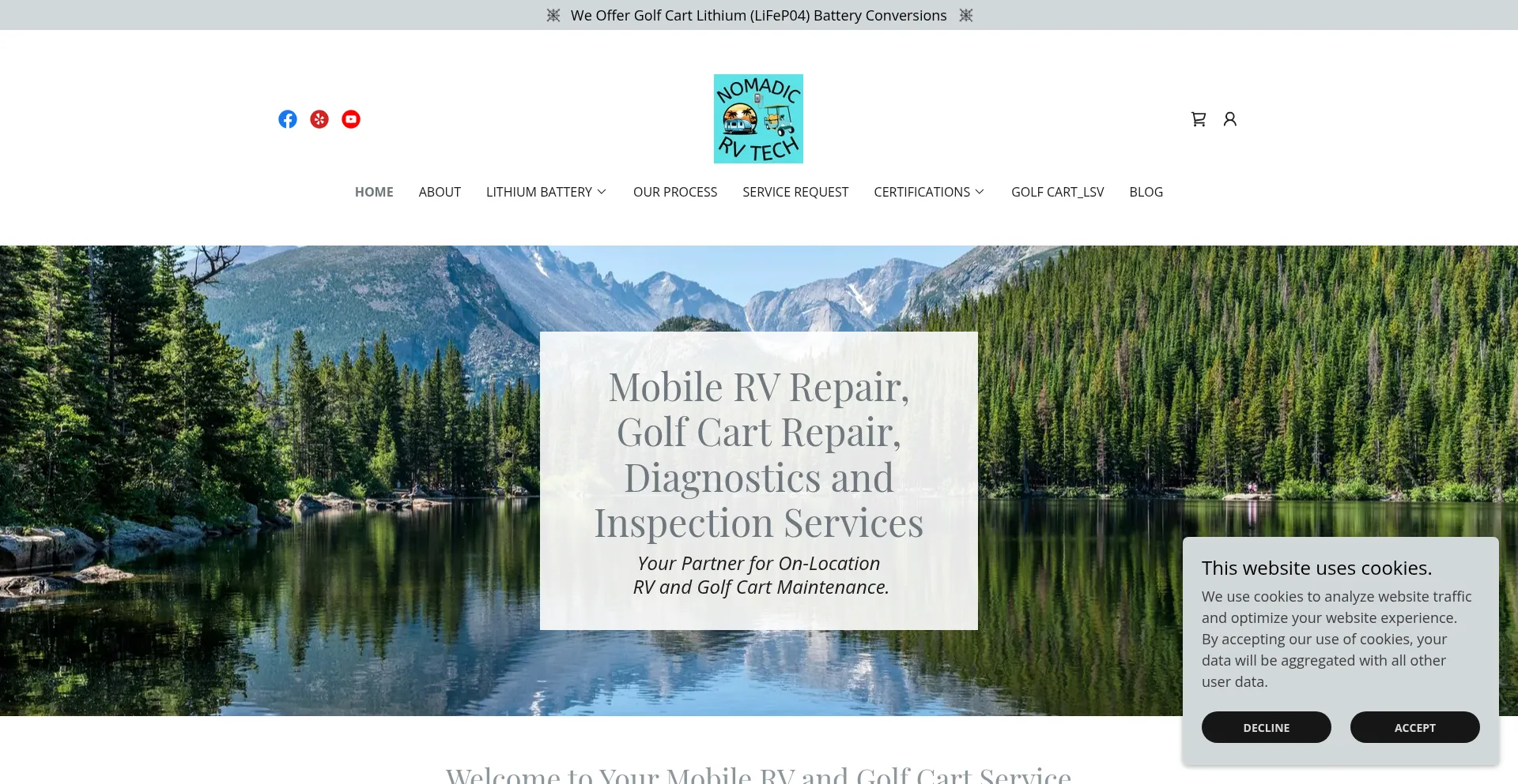 nomadicrvtech.com www.googletagmanager.com csp.secureserver.net cdn.poynt.net d2r4erd6f6ydft.cloudfront.net img1.wsimg.com pagolfcartworld.com www.yelp.com connect.facebook.net www.google-analytics.com +6 more