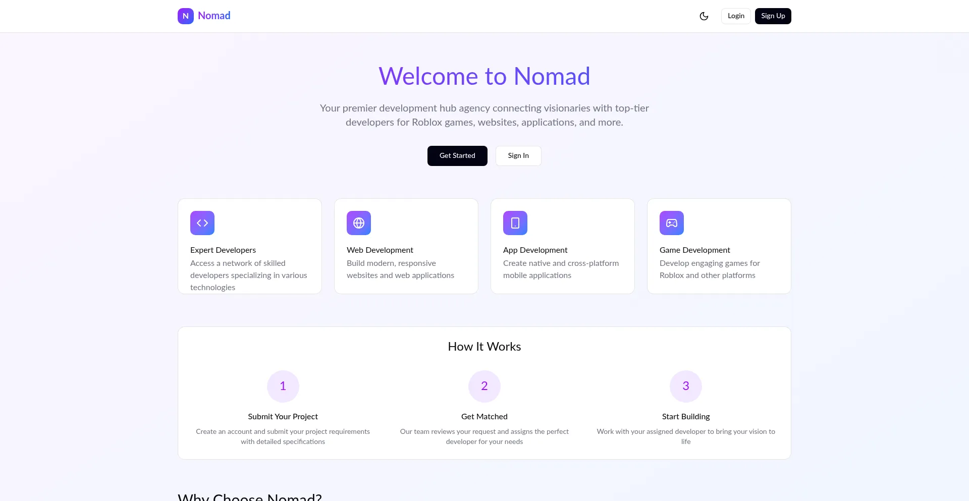 Your premier development hub agency connecting visionaries with top-tier developers for Roblox games, websites, applications, and more.