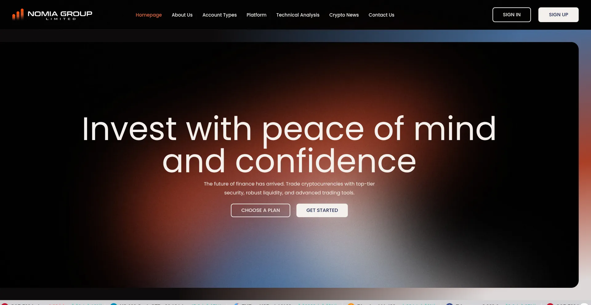 The nomia-group-limited.com website provides financial services including investment management, wealth advisory, or financial planning solutions. Services may encompass portfolio management, investment opportunities, financial consulting, or asset growth strategies for individual and institutional clients.