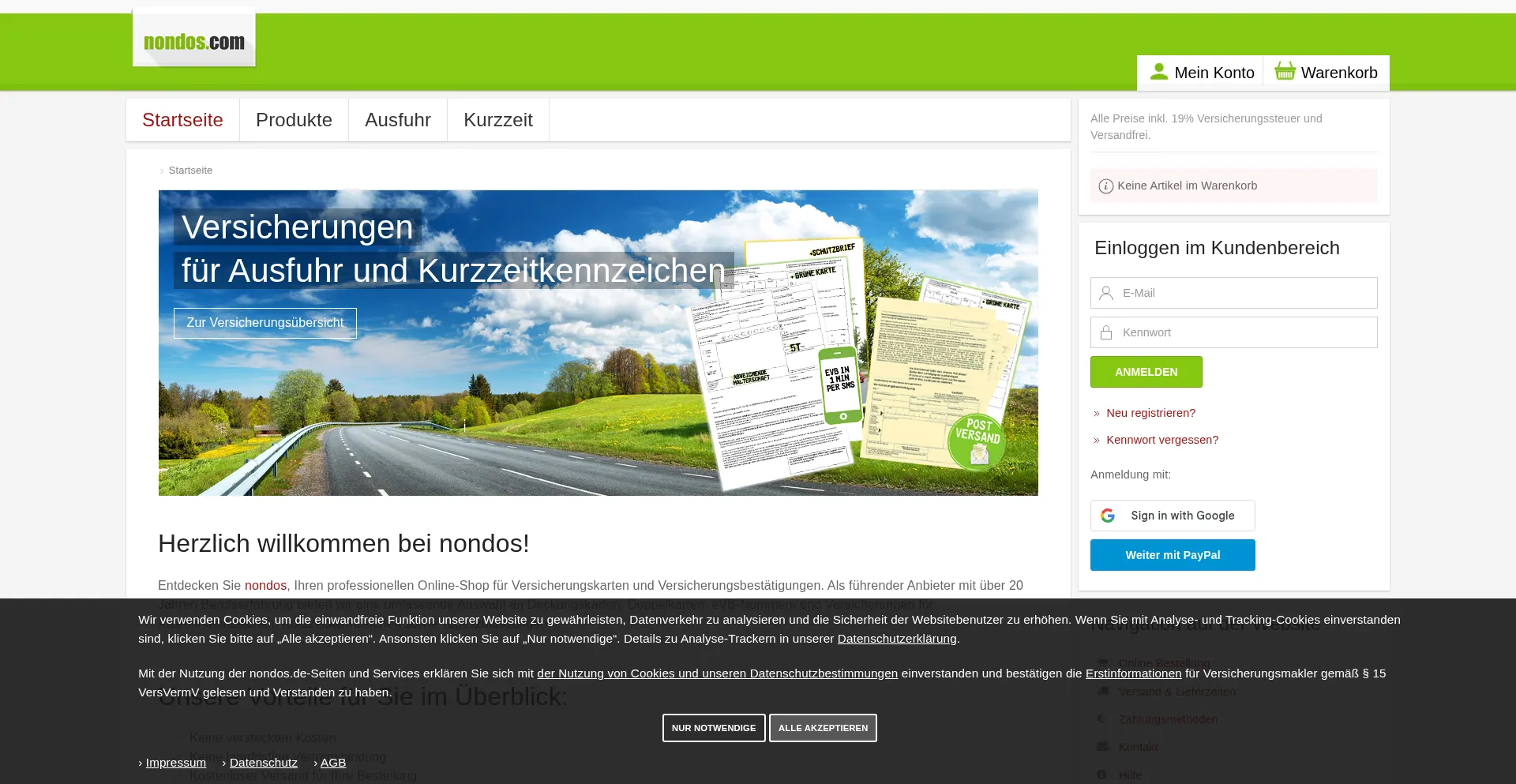 nondos.com Versicherungen (eVB) für Kurzzeitkennzeichen & Ausfuhrkennzeichen