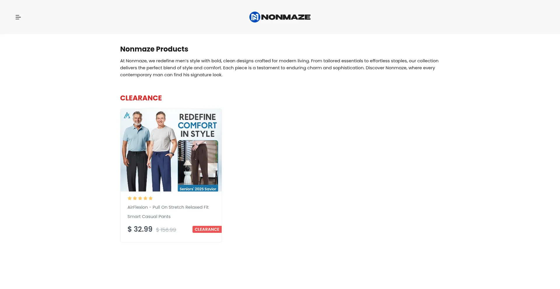 At Nonmaze, we redefine men’s style with bold, clean designs crafted for modern living. From tailored essentials to effortless staples, our collection delivers the perfect ble...