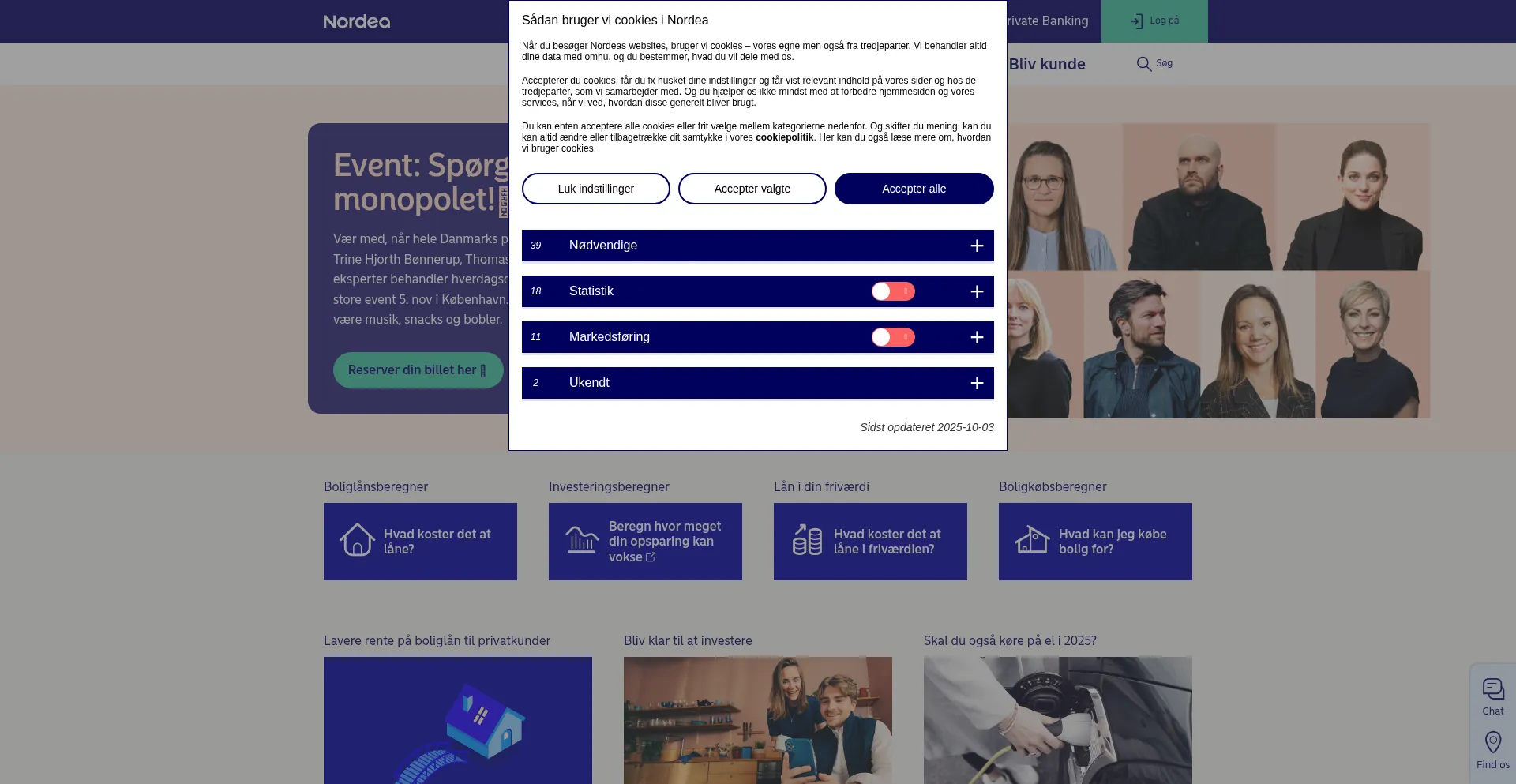 The nordea.dk website provides financial services including investment management, wealth advisory, or financial planning solutions. Services may encompass portfolio management, investment opportunities, financial consulting, or asset growth strategies for individual and institutional clients.