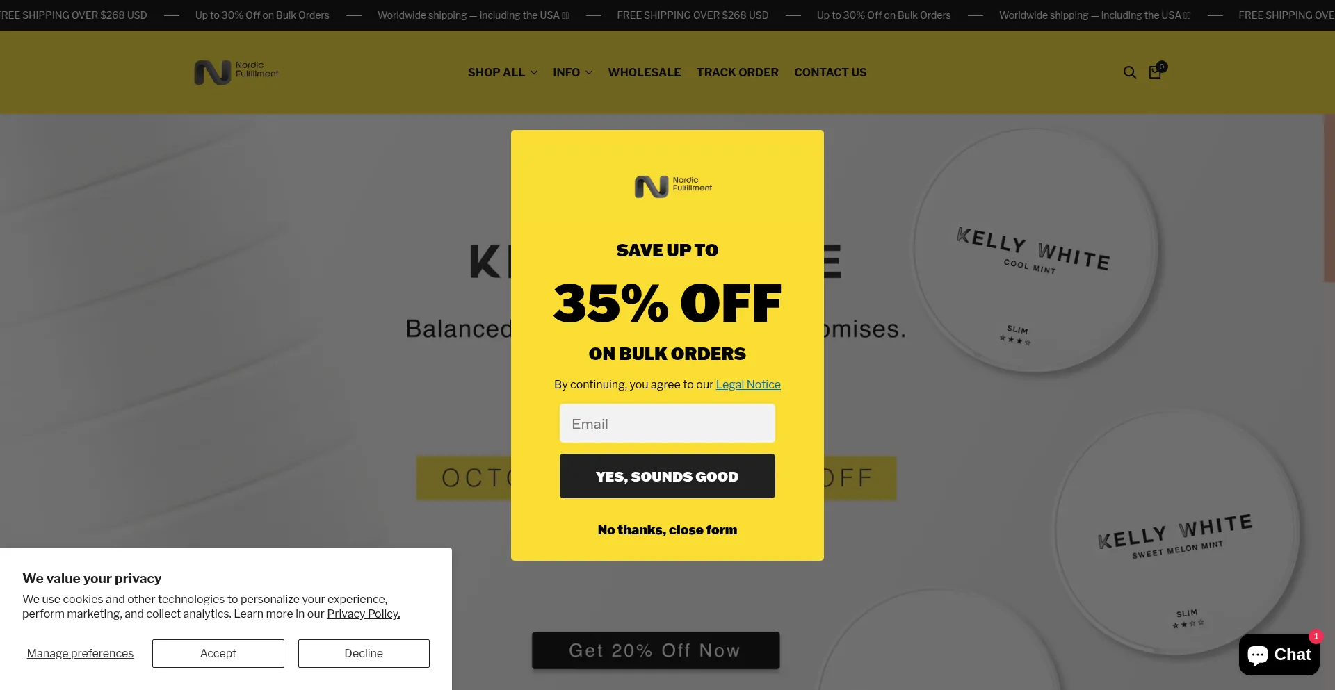 The website implements cookie consent mechanisms in compliance with privacy regulations such as GDPR or CCPA. This demonstrates that nordicfulfillment.com adheres to data protection standards and provides users with control over personal data collection practices.