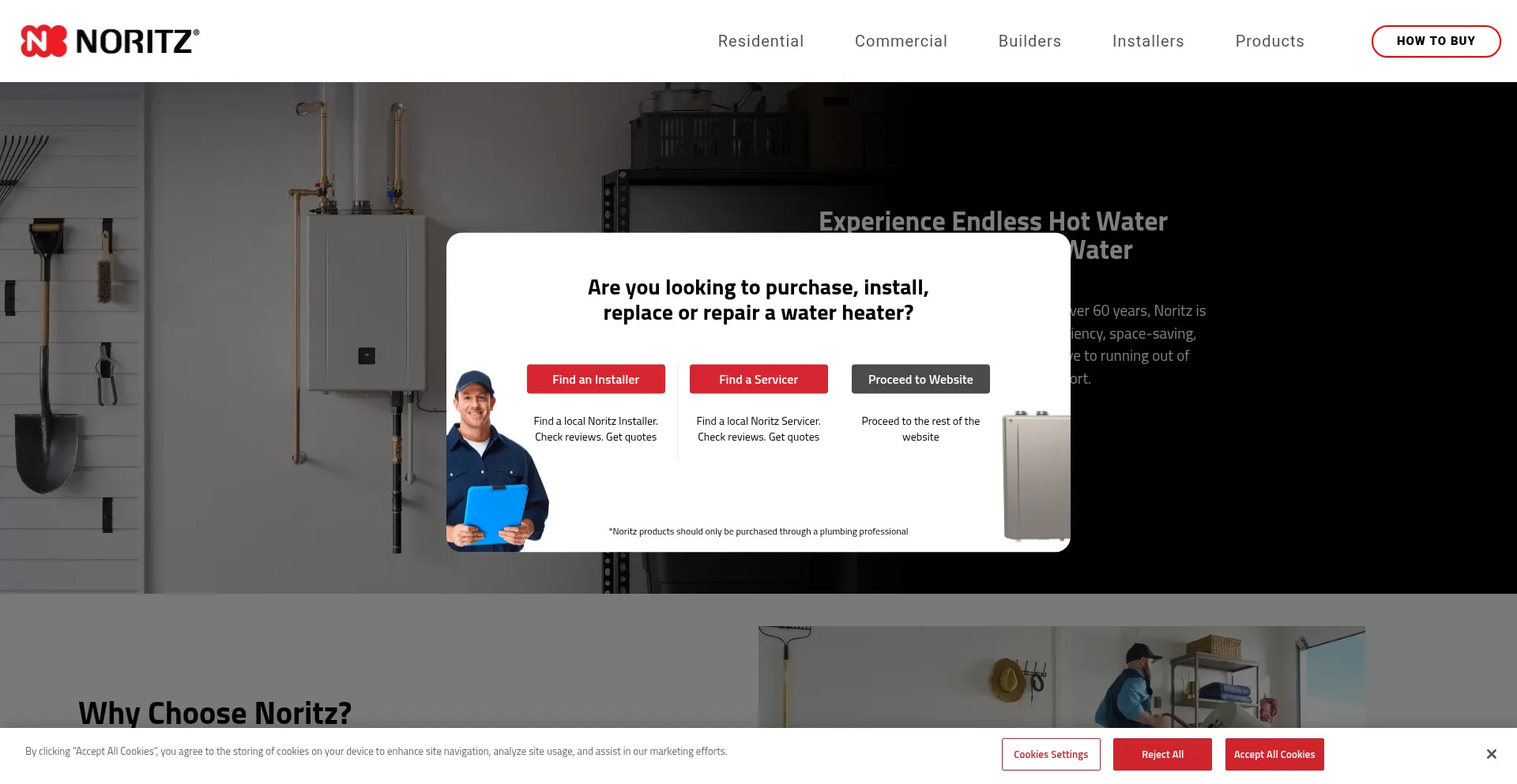 The website implements cookie consent mechanisms in compliance with privacy regulations such as GDPR or CCPA. This demonstrates that noritz.com adheres to data protection standards and provides users with control over personal data collection practices.