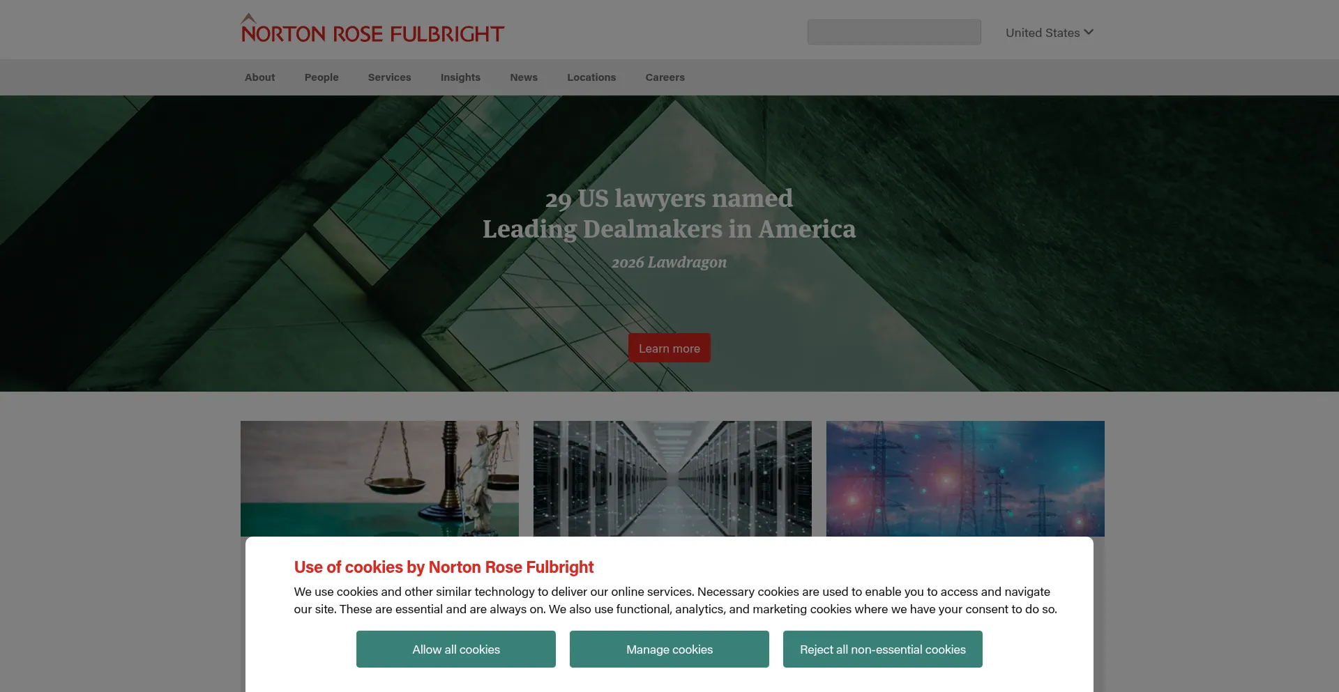 The website implements cookie consent mechanisms in compliance with privacy regulations such as GDPR or CCPA. This demonstrates that nortonrosefulbright.com adheres to data protection standards and provides users with control over personal data collection practices.