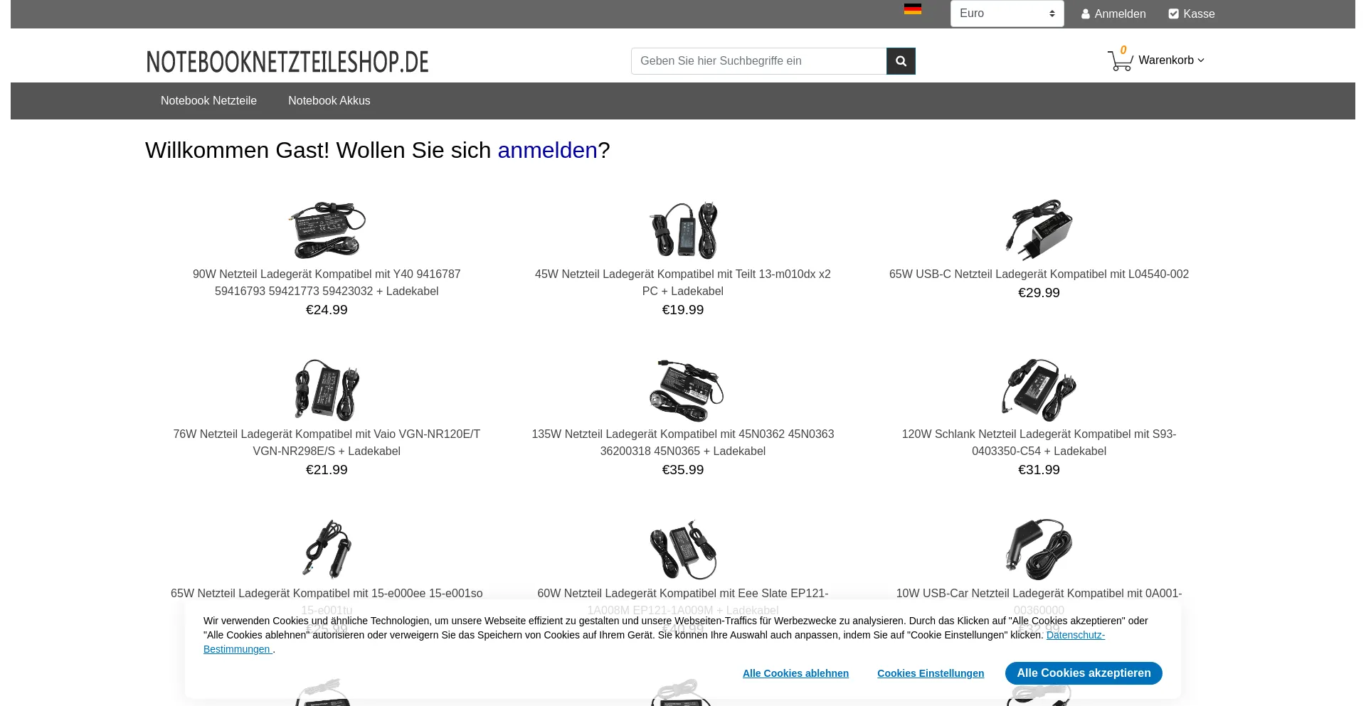 Analysis indicates that notebooknetzteileshop.de operates as an e-commerce platform facilitating online transactions for goods or services. The website implements shopping cart functionality, payment processing systems, and product catalog features typical of commercial retail operations.