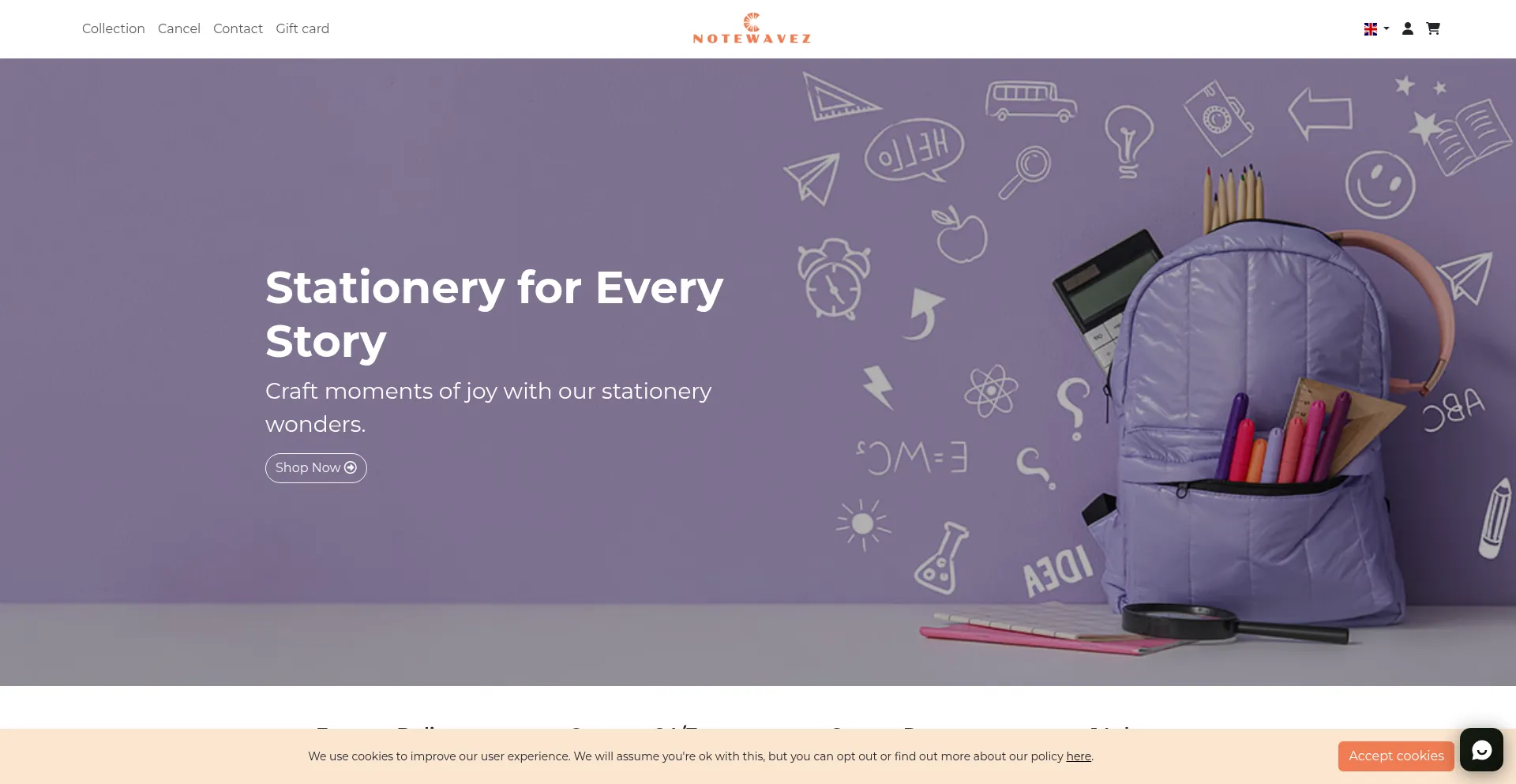 Analysis indicates that notewavez.com operates as an e-commerce platform facilitating online transactions for goods or services. The website implements shopping cart functionality, payment processing systems, and product catalog features typical of commercial retail operations.