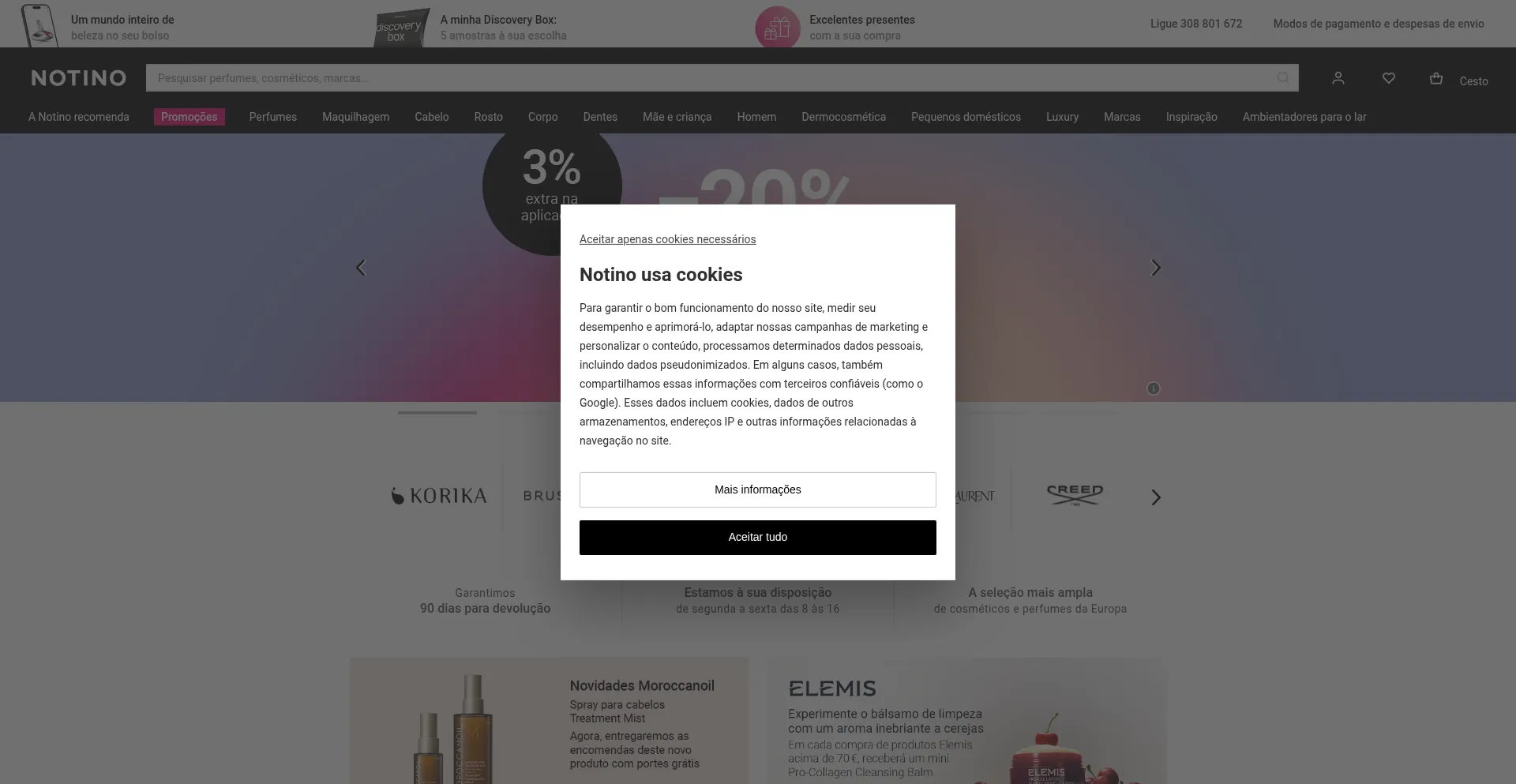 The notino.pt website uses Google Tag Manager to add and update tracking tags on its website.