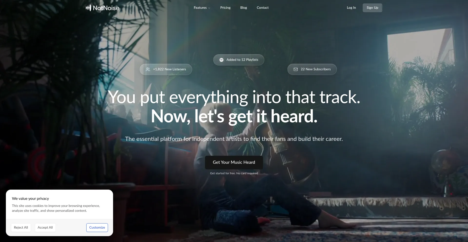 NotNoise - Music Marketing and Promotion for Indie Artists | Smart Links, Playlist Pitching, Smart Ads