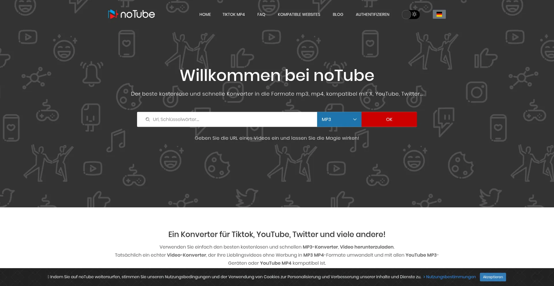 Konverter: YouTube MP3, Tiktok MP4 und mehr! - noTube