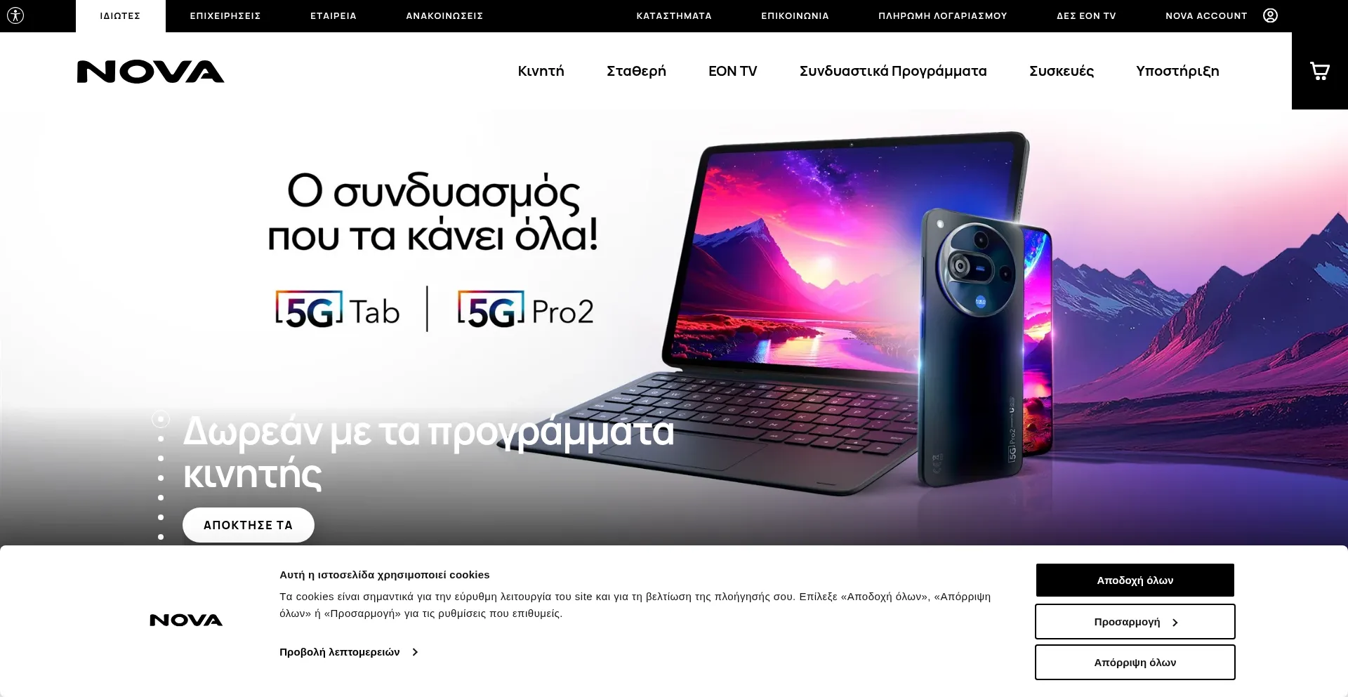 The website implements cookie consent mechanisms in compliance with privacy regulations such as GDPR or CCPA. This demonstrates that nova.gr adheres to data protection standards and provides users with control over personal data collection practices.