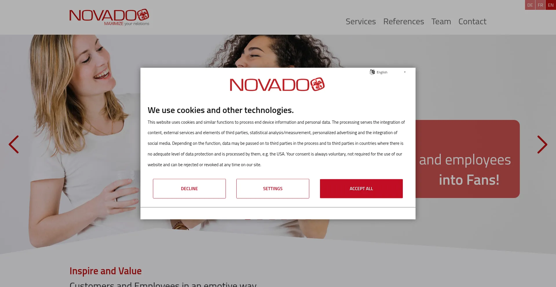 The website implements cookie consent mechanisms in compliance with privacy regulations such as GDPR or CCPA. This demonstrates that novadoo.com adheres to data protection standards and provides users with control over personal data collection practices.