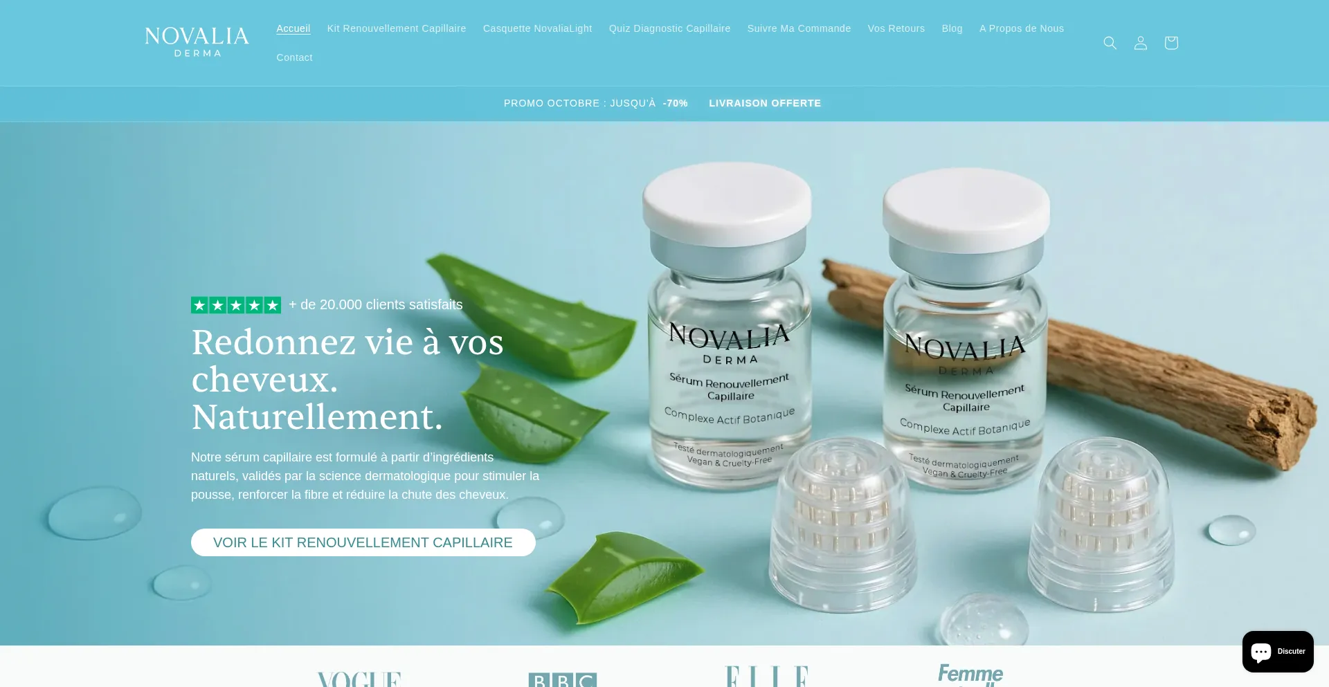 Retrouvez des cheveux plus forts et plus denses avec Novalia Derma. Nos soins capillaires experts stimulent la repousse en douceur et redonnent vitalité à votre chevelure.