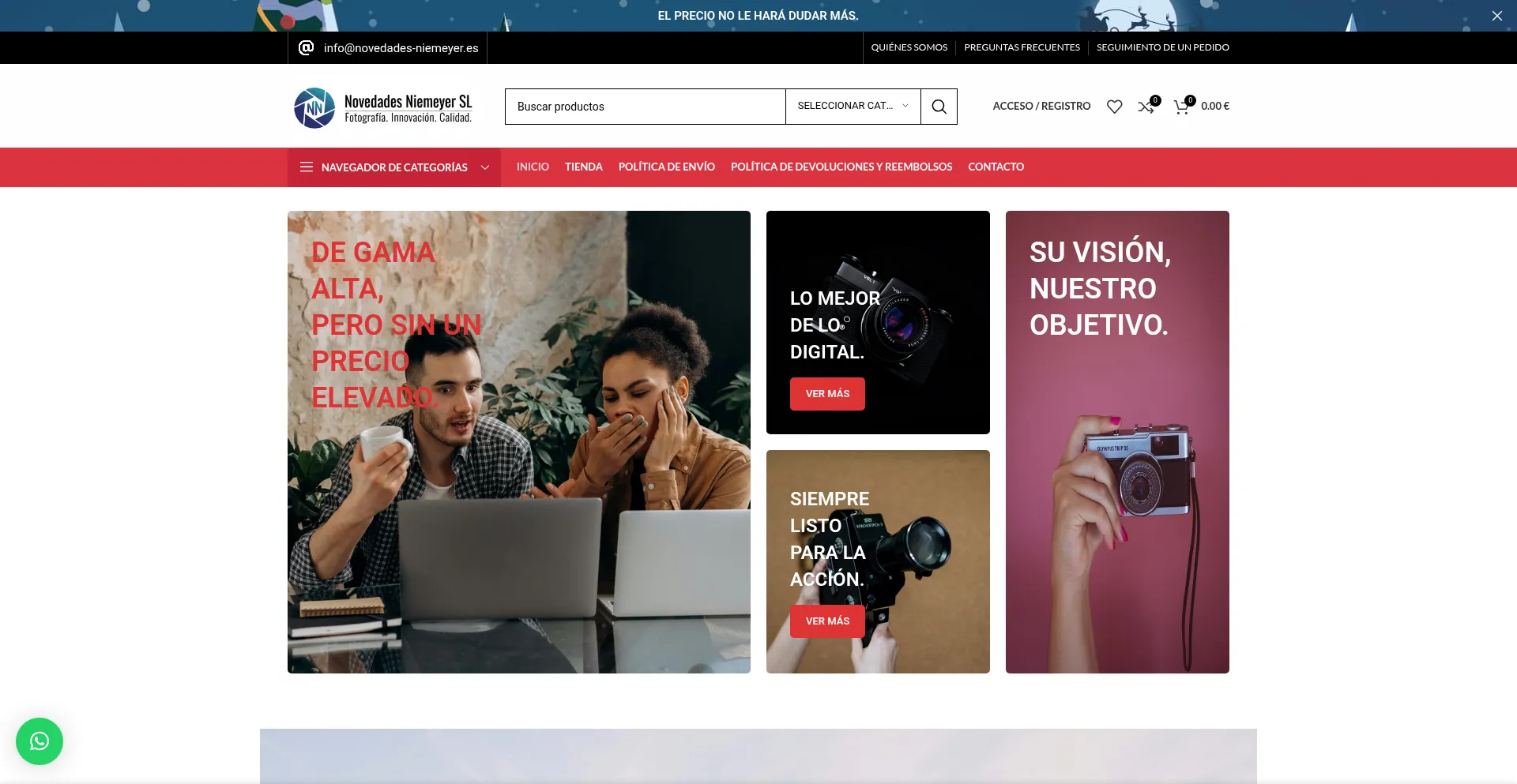 Analysis indicates that novedades-niemeyer.es operates as an e-commerce platform facilitating online transactions for goods or services. The website implements shopping cart functionality, payment processing systems, and product catalog features typical of commercial retail operations.