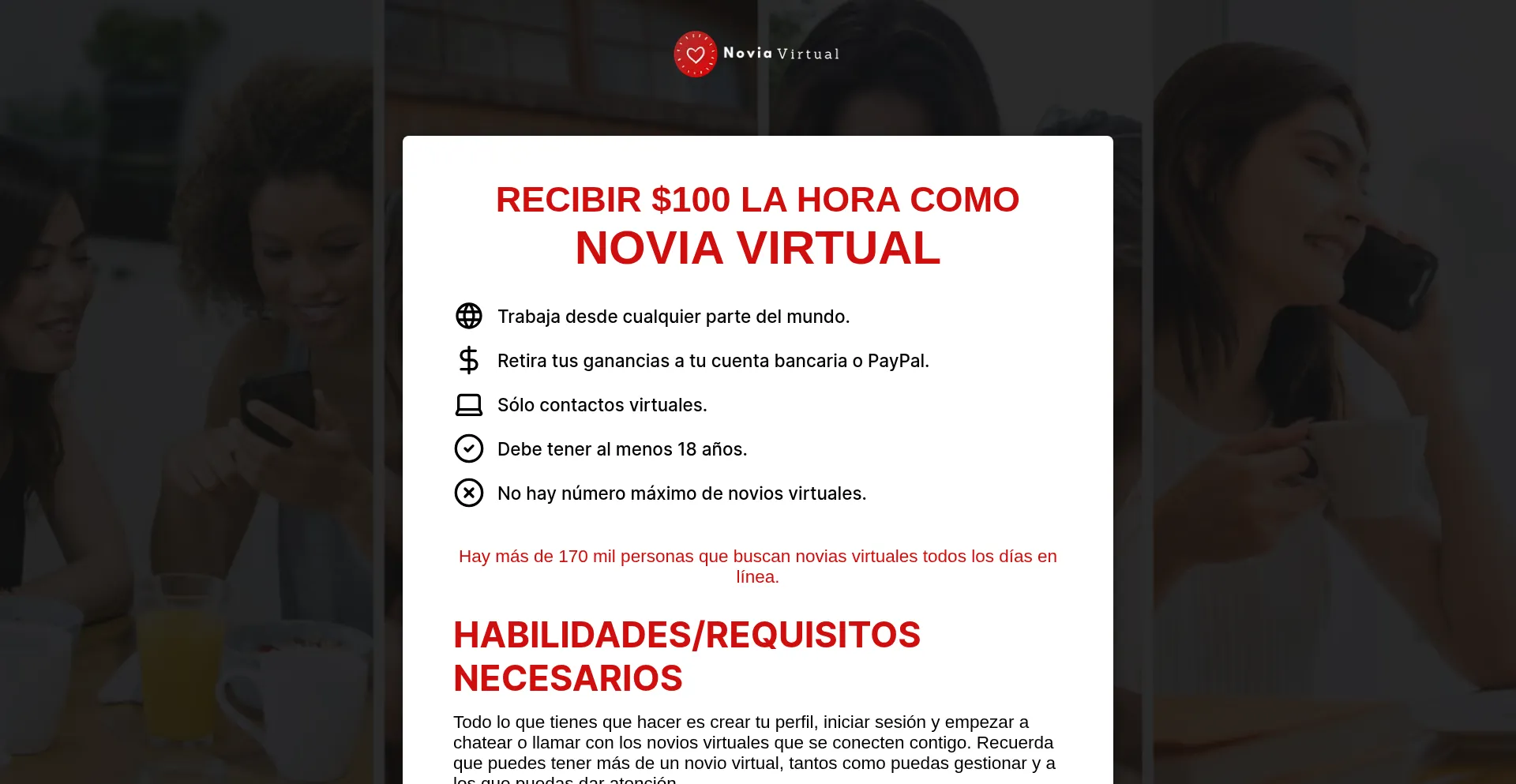 Impulse no está afiliada a ninguna plataforma de citas, servicios de compañía virtual ni a ningún otro tipo de empleo o interacción en línea, como Novia Virtual.