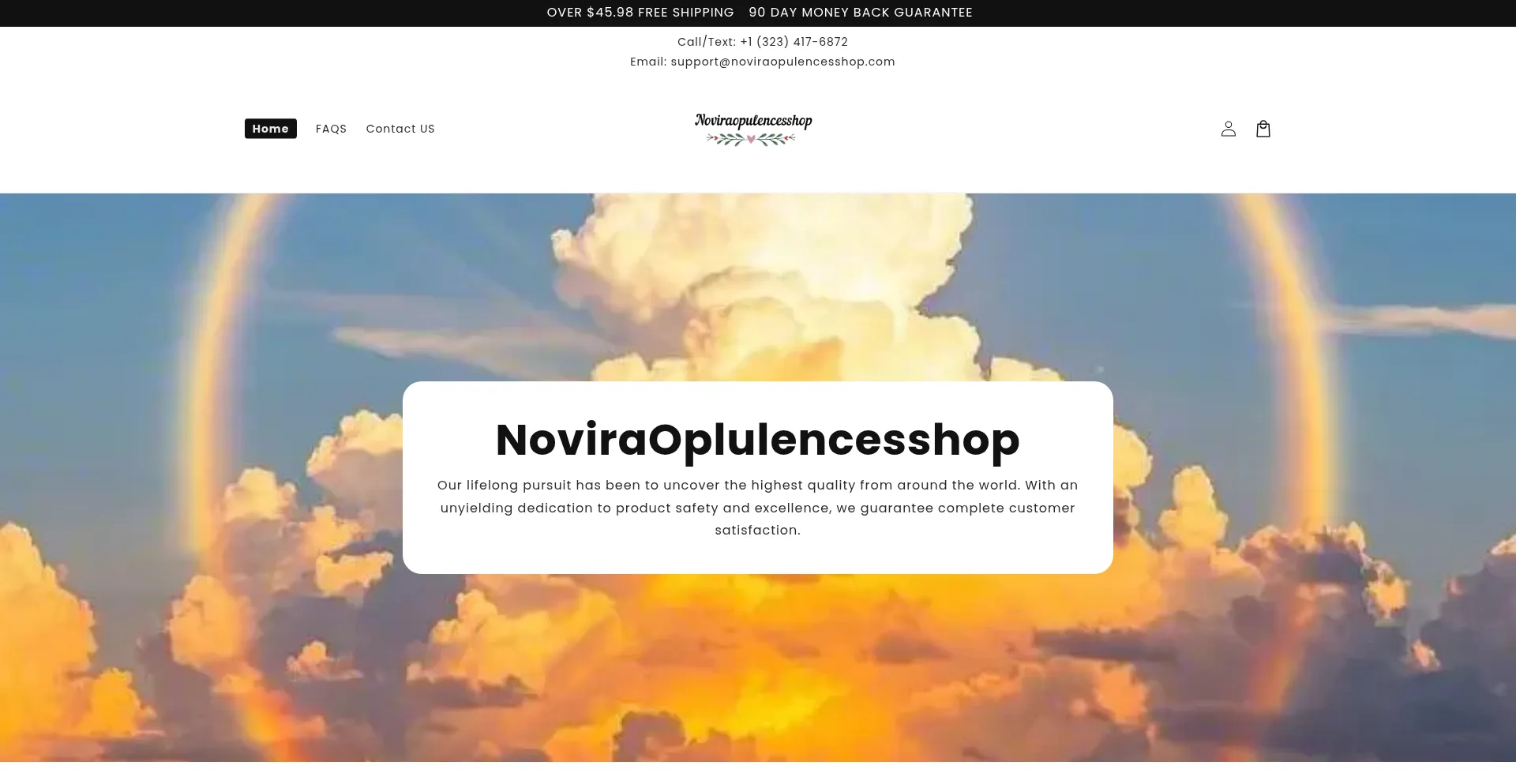 Noviraopulencesshop.com operates as a suspicious website with multiple red flags that compromise its trustworthiness and user safety. The platform exhibits concerning characteristics including misleading information, questionable operational practices, or potential malware distribution that poses significant risks to visitors.