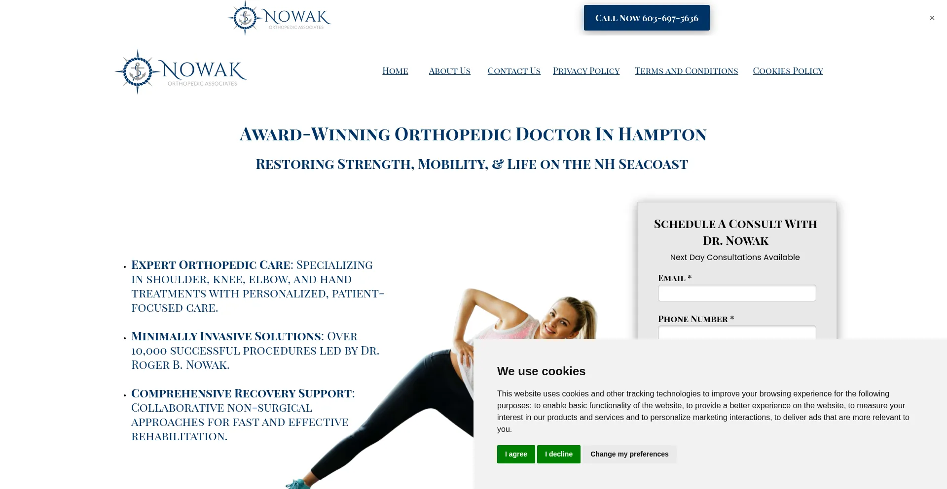 The website implements cookie consent mechanisms in compliance with privacy regulations such as GDPR or CCPA. This demonstrates that nowakorthopedics.site adheres to data protection standards and provides users with control over personal data collection practices.