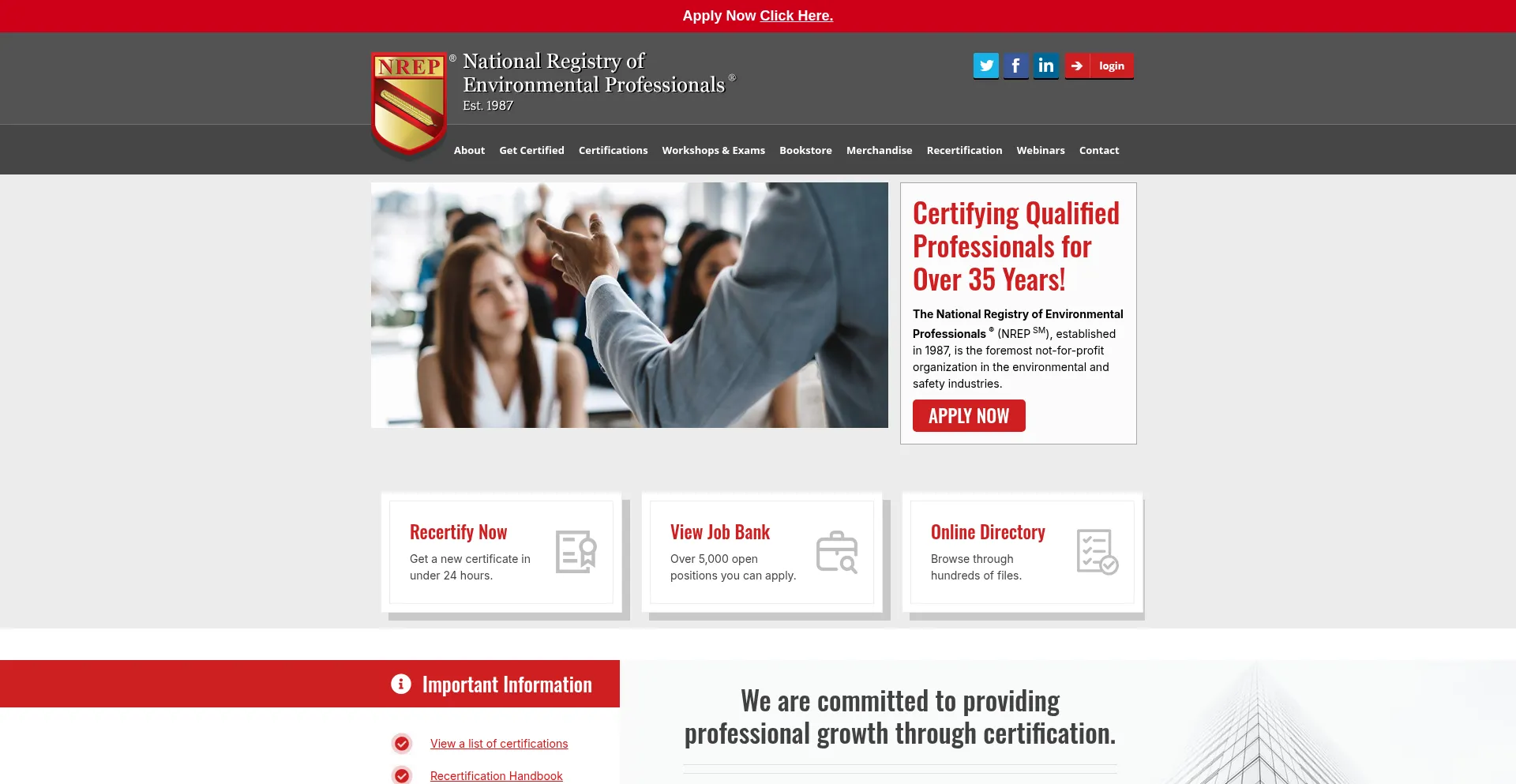 The National Registry of Environmental Professionals, established in 1987, is the foremost not-for-profit organization in environment and safety.