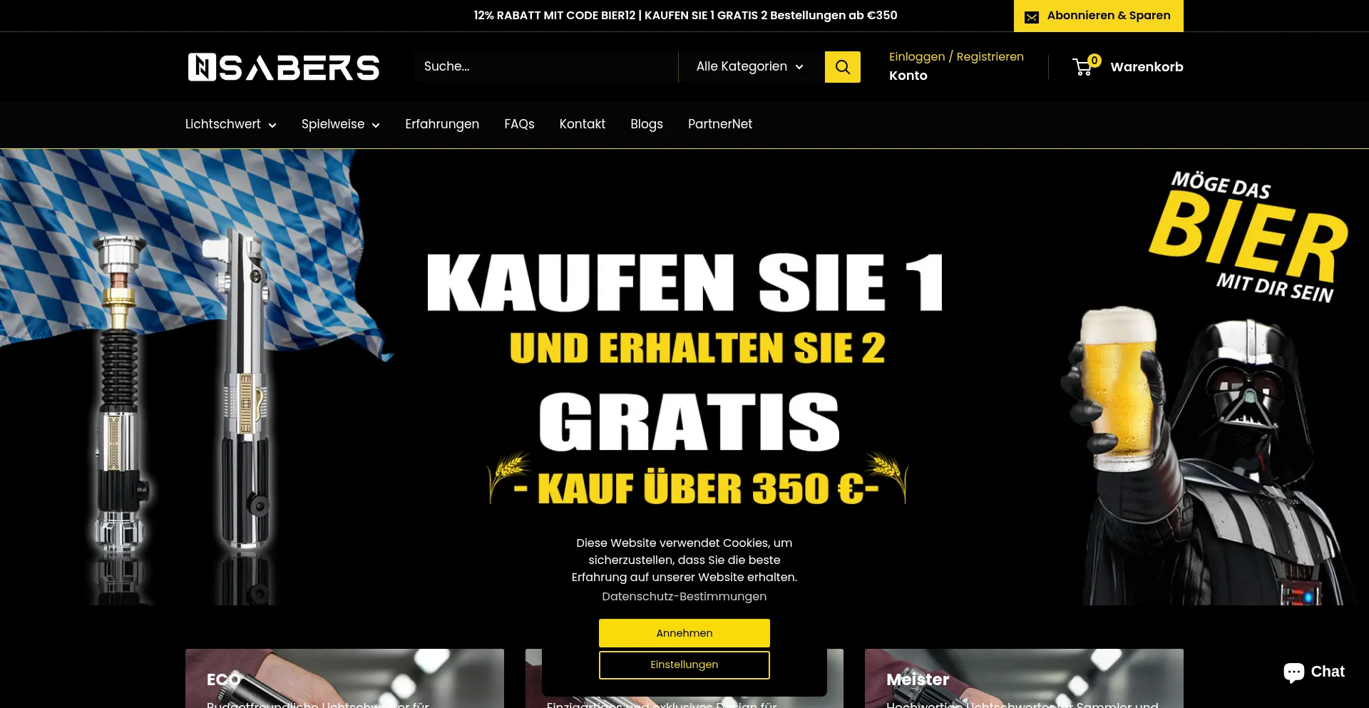 The nsabers.de website utilizes free e-commerce platform solutions, which may indicate cost-conscious operations but could also suggest limitations in security features, customer support, or advanced functionality compared to enterprise-grade solutions.