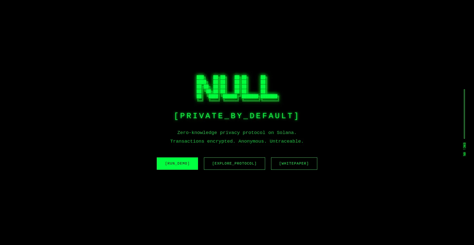 NULL - Zero-knowledge privacy protocol on Solana. Your transactions, your privacy.