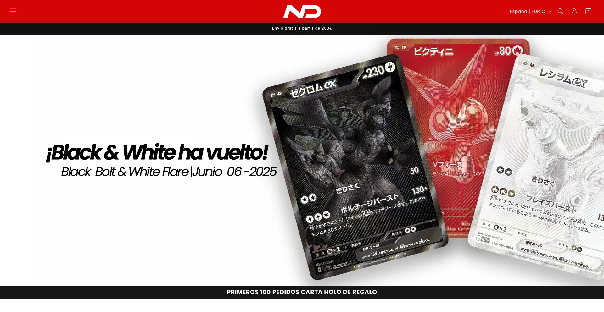 Bienvenido a ND TCG, el lugar donde cada coleccionista encuentra su carta perfecta. Descubre un catálogo completo de Pokemon con productos japoneses, ingleses, chinos y mucho m...