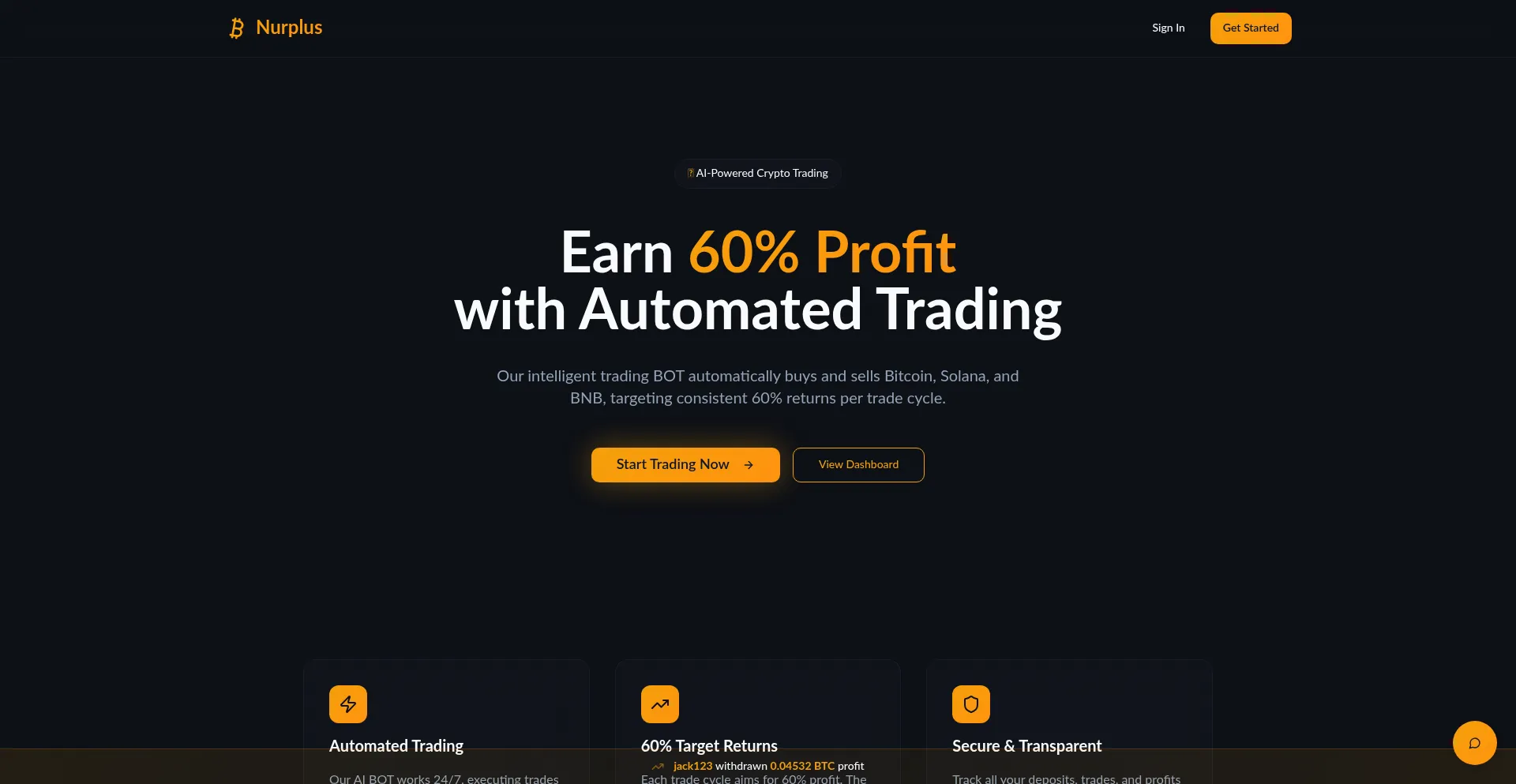 Earn 60% profit with automated crypto trading. AI-powered BOT that trades Bitcoin, Solana, and BNB 24/7.