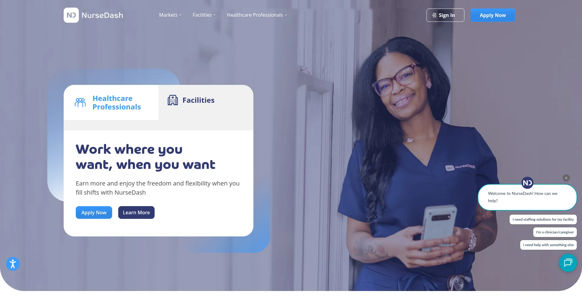 NurseDash is the first on-demand healthcare marketplace for facilities that need staffing support and clinicians looking for open shifts.