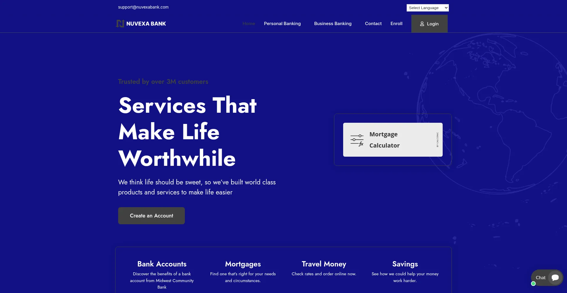 The nuvexabank.com website provides financial services including investment management, wealth advisory, or financial planning solutions. Services may encompass portfolio management, investment opportunities, financial consulting, or asset growth strategies for individual and institutional clients.