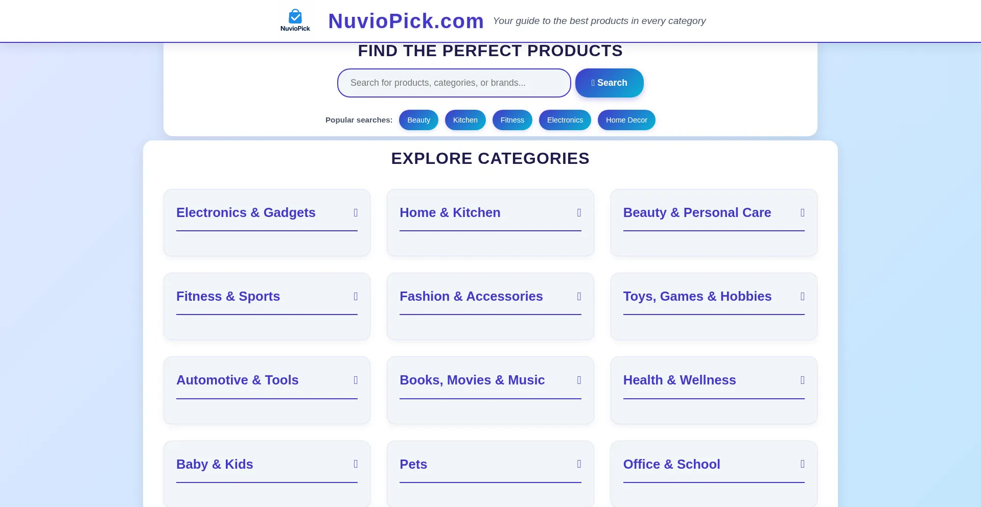 NuvioPick.com helps you discover the best products in every category. Explore top picks in electronics, home, beauty, fashion, sports, toys, automotive, books, music, health, ba...