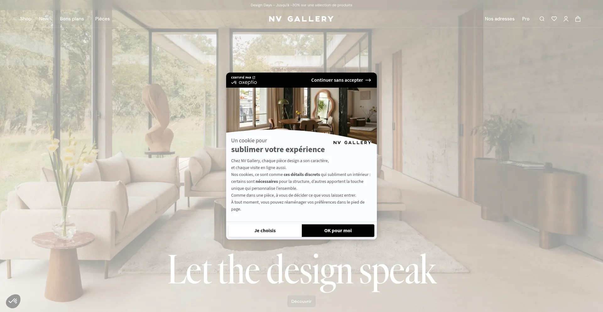 Analysis indicates that nvgallerie.com operates as an e-commerce platform facilitating online transactions for goods or services. The website implements shopping cart functionality, payment processing systems, and product catalog features typical of commercial retail operations.