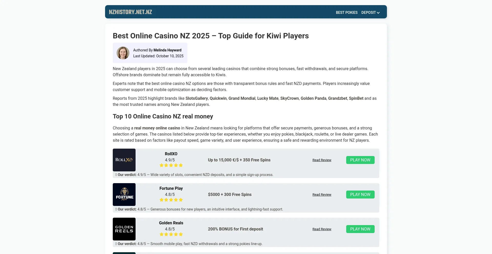 Play at the Best Online Casinos NZ 2025 – Compare our Top 10 sites with pokies, free spins, no deposit bonuses & real money payouts for Kiwi players.