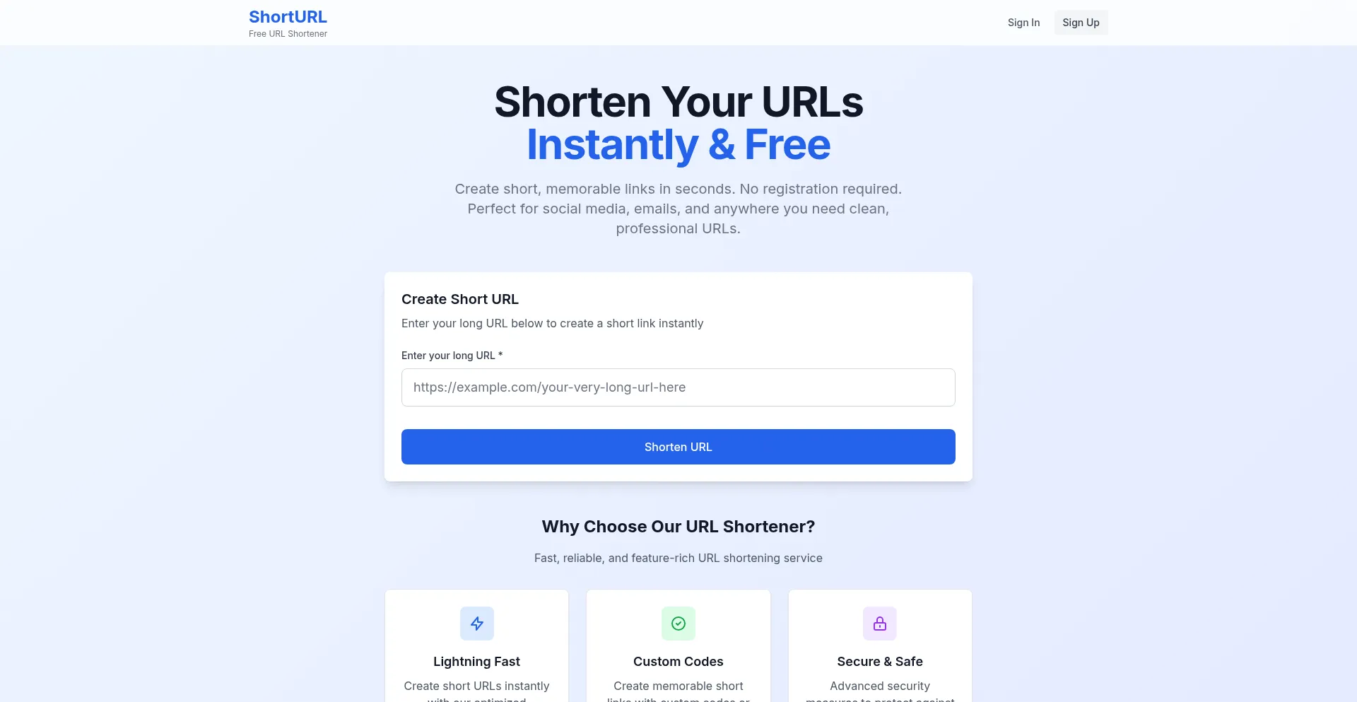 Create short URLs instantly and for free. No registration required. Fast, secure, and reliable URL shortening service.
