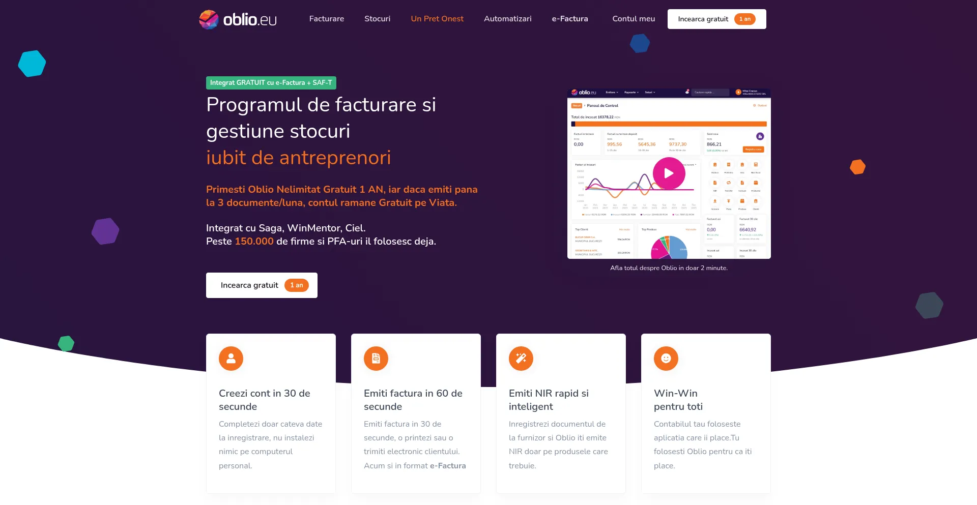 Oblio este programul de facturare si gestiune stocuri iubit de utilizatorii sai. Creat de experti contabili, iubit de cunoscatori, venerat de incepatori. Integrat cu Saga, WinMe...