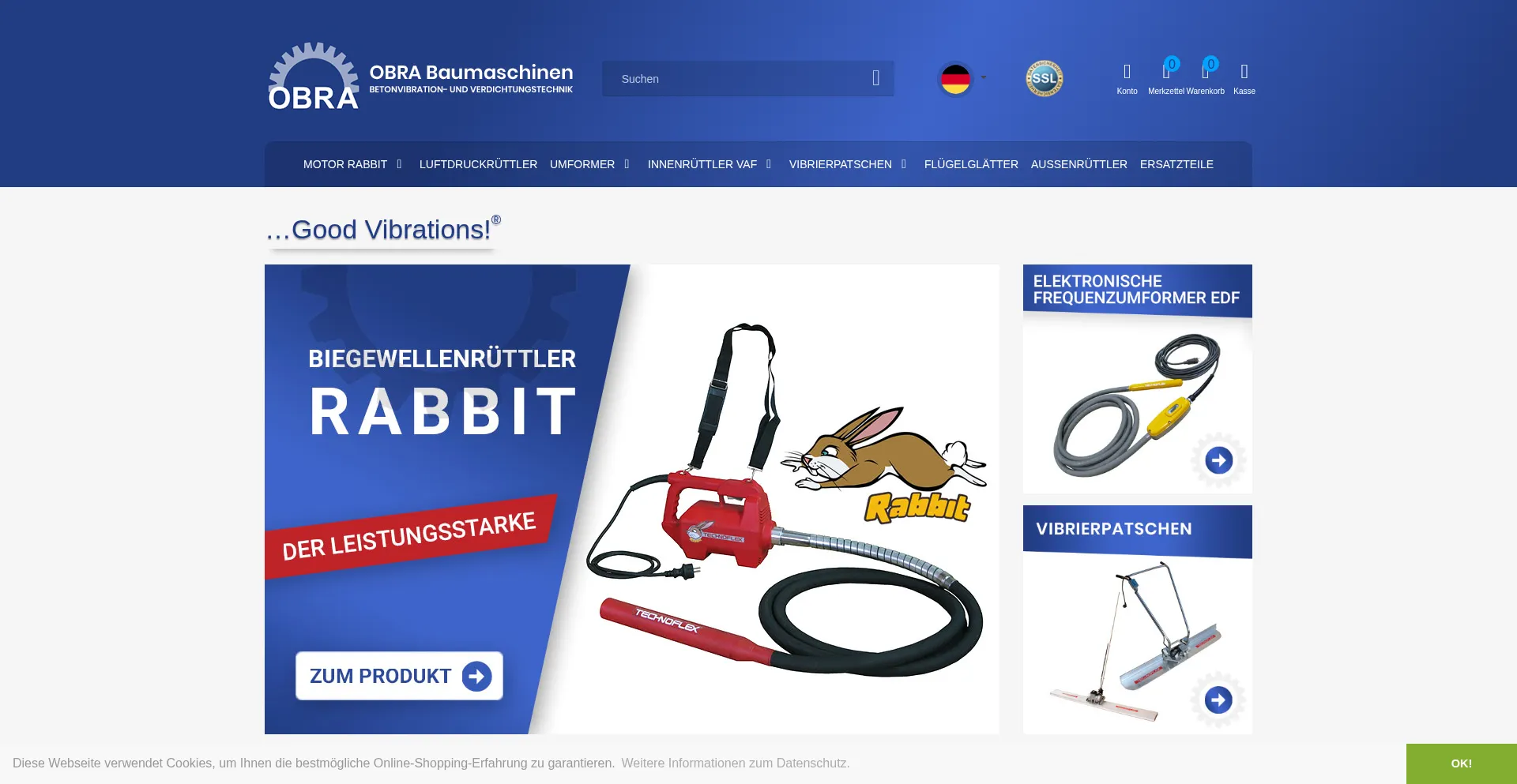 Analysis indicates that obra-baumaschinen.de operates as an e-commerce platform facilitating online transactions for goods or services. The website implements shopping cart functionality, payment processing systems, and product catalog features typical of commercial retail operations.