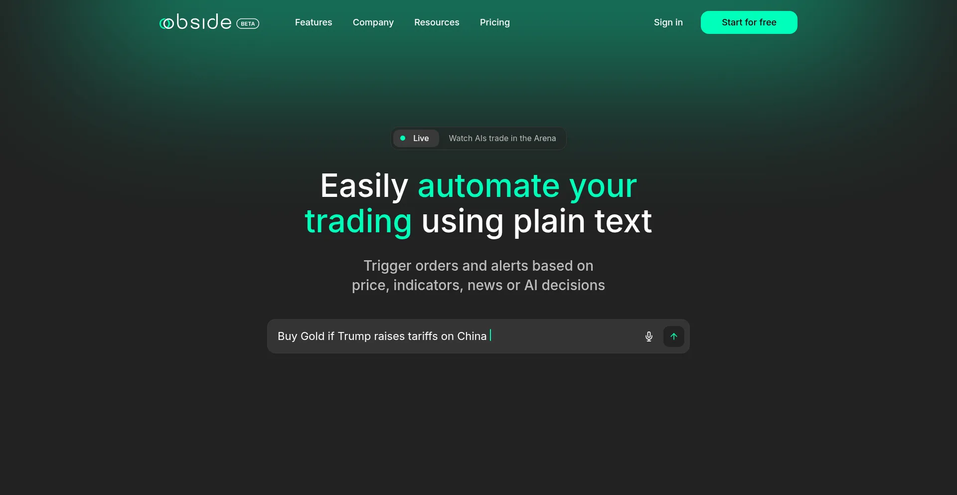 Turn plain text into alerts, orders, algo strategies and AI bots, based on any condition from price to indicators, news or macro data.