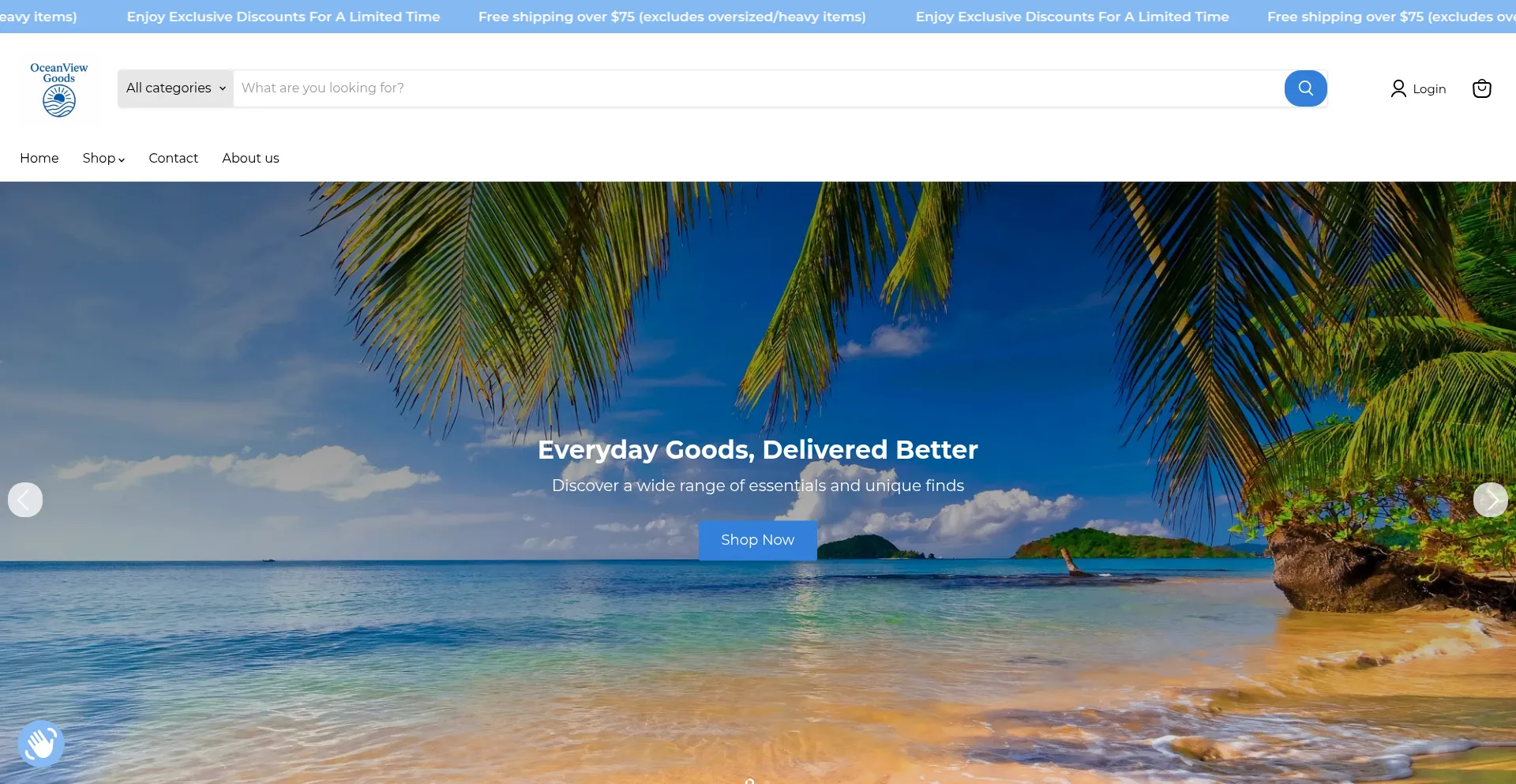 Analysis indicates that oceanviewgoods.com operates as an e-commerce platform facilitating online transactions for goods or services. The website implements shopping cart functionality, payment processing systems, and product catalog features typical of commercial retail operations.