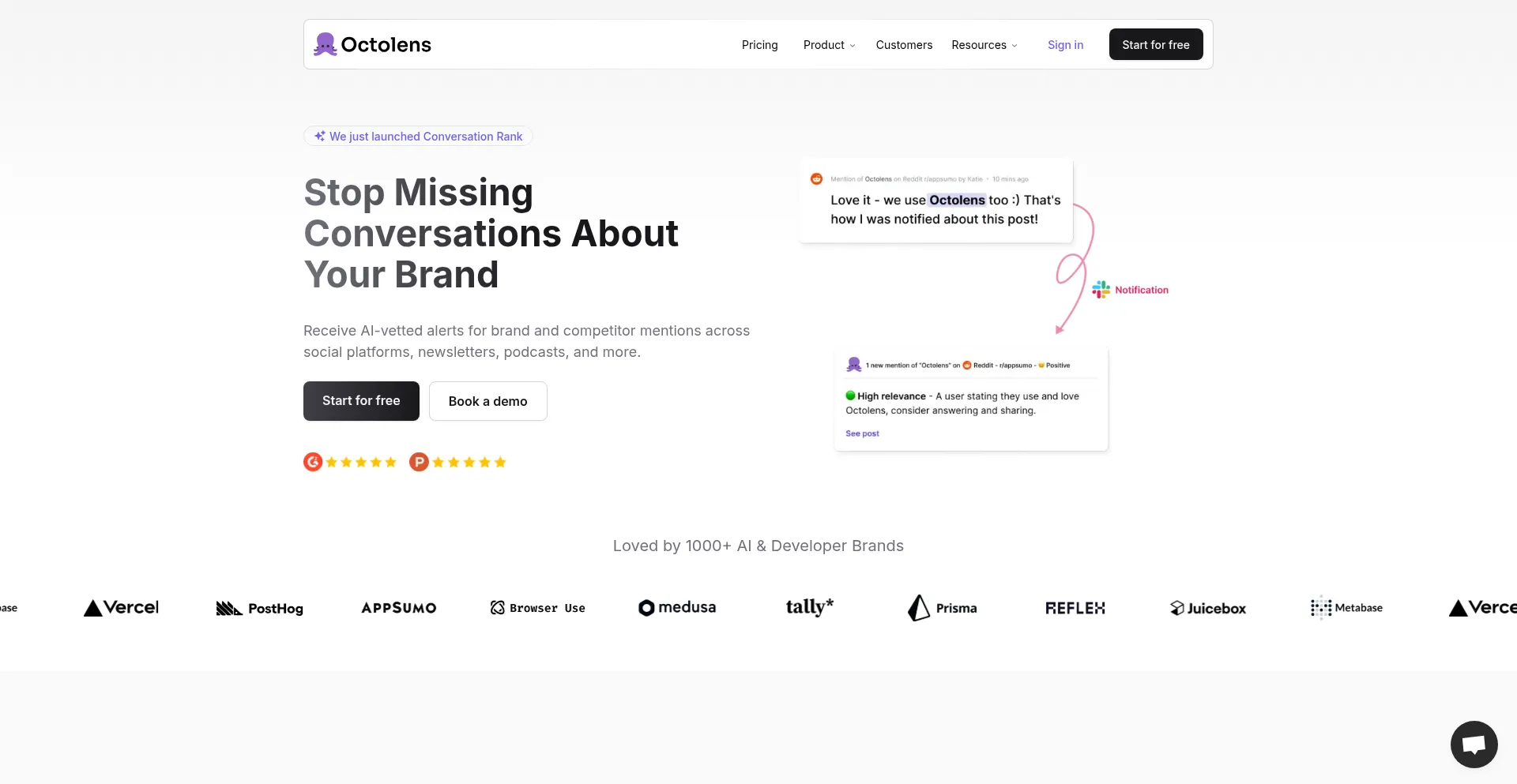 AI-powered brand monitoring that tracks mentions across Twitter, Reddit, GitHub, and more. Get real-time alerts for your brand, competitors, and industry keywords with instant r...