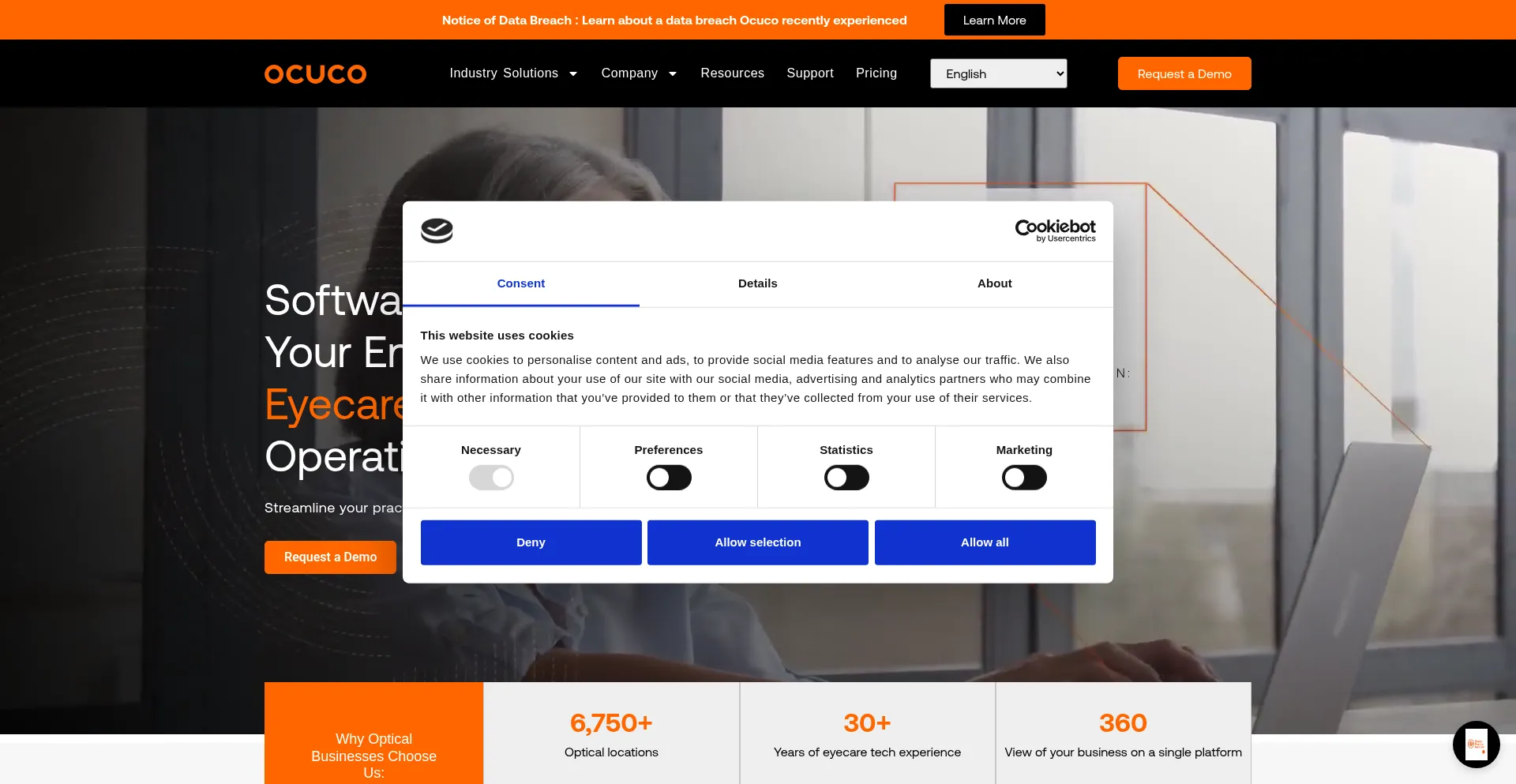 The website implements cookie consent mechanisms in compliance with privacy regulations such as GDPR or CCPA. This demonstrates that ocuco.com adheres to data protection standards and provides users with control over personal data collection practices.