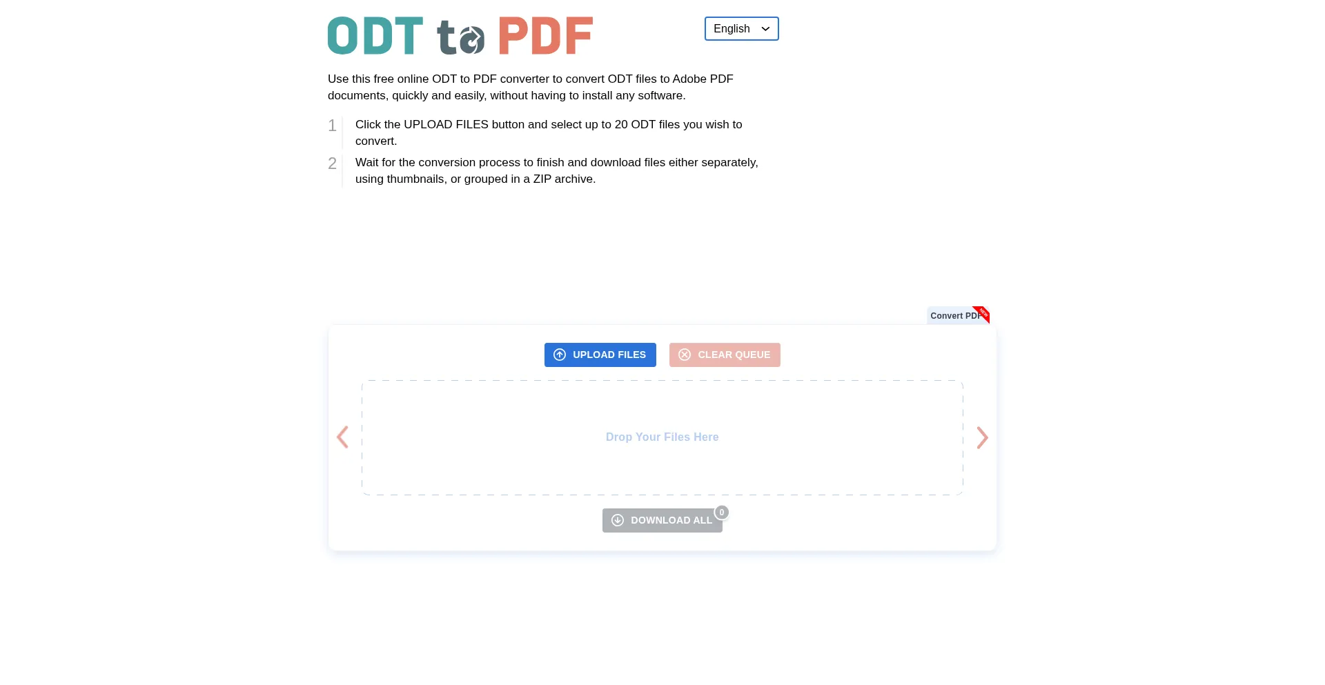 This free online ODT to PDF converter allows you to convert ODT files to Adobe PDF documents, quickly and easily.