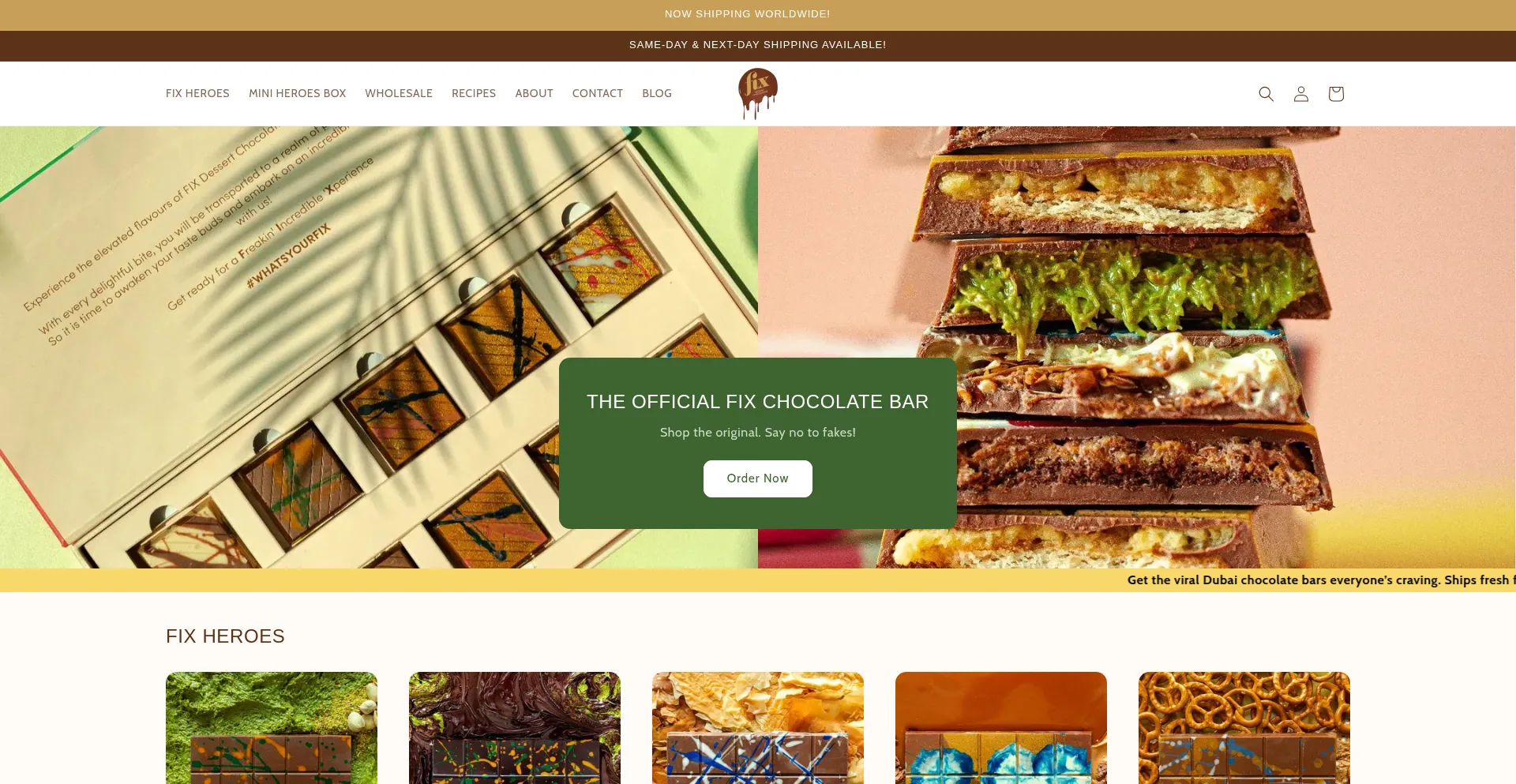 Indulge in Dubai's viral chocolate bars with FIX Dessert Chocolatier. Shop our hero collection featuring Baklawa, Knafeh, Biscoff, and more. Fast delivery in Dubai & Abu Dhabi. ...