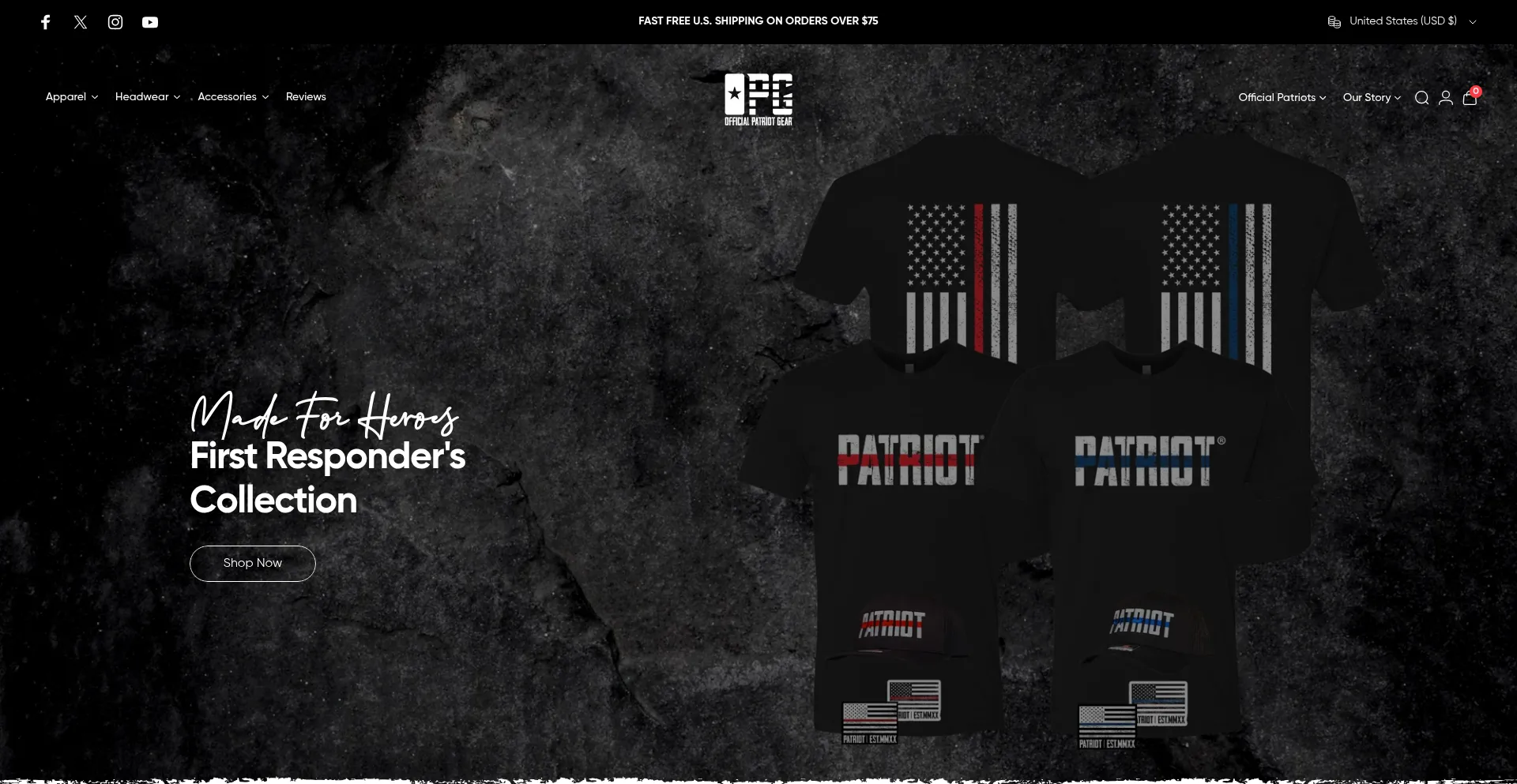 Analysis indicates that officialpatriotgear.com operates as an e-commerce platform facilitating online transactions for goods or services. The website implements shopping cart functionality, payment processing systems, and product catalog features typical of commercial retail operations.