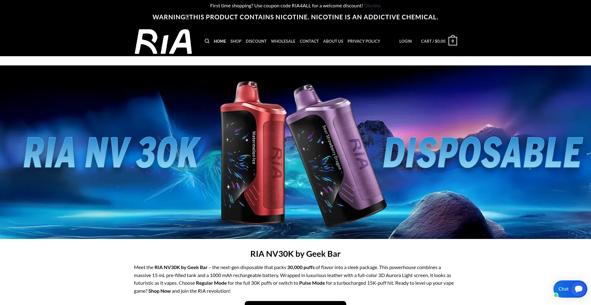 Analysis indicates that officialriavape.com operates as an e-commerce platform facilitating online transactions for goods or services. The website implements shopping cart functionality, payment processing systems, and product catalog features typical of commercial retail operations.
