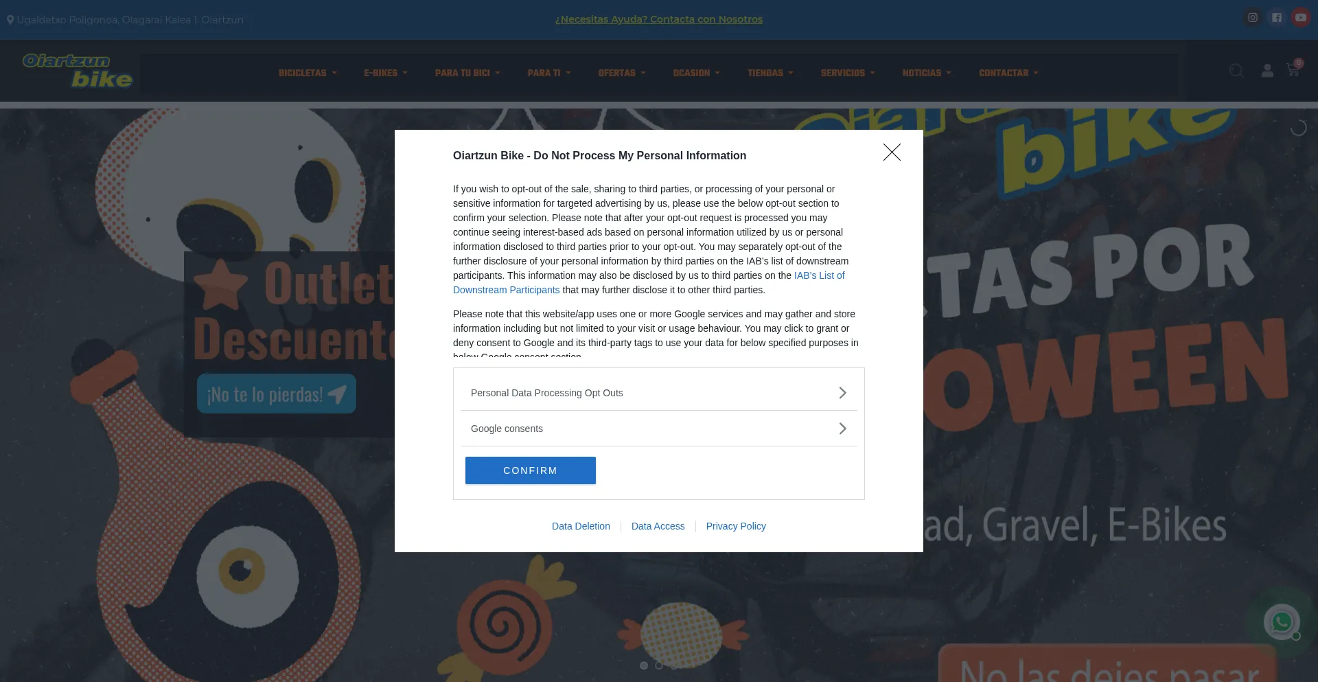 The oiartzunbike.com website uses Google Tag Manager to add and update tracking tags on its website.