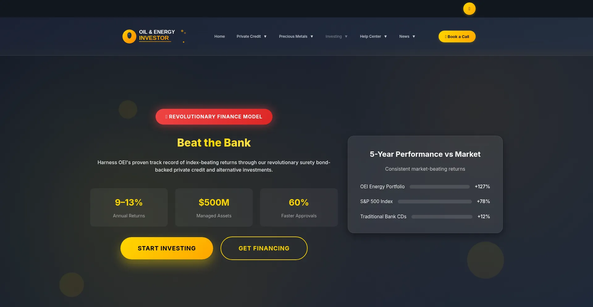 Beat the bank with OEI's index-beating returns. Private Credit, Precious Metals, and Alternative Investing divisions offering 9-13% annual returns.