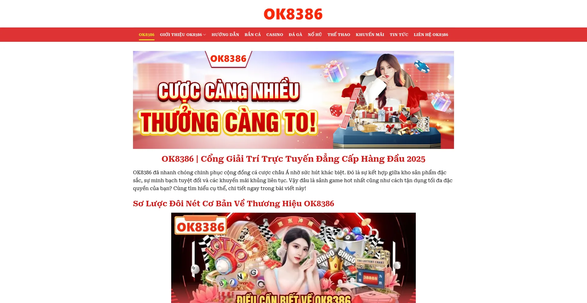 OK8386 mang đến trải nghiệm cá cược an toàn, công bằng với hàng ngàn sản phẩm đỉnh cao. Tham gia để nhận đặc quyền thành viên và bắt đ�...