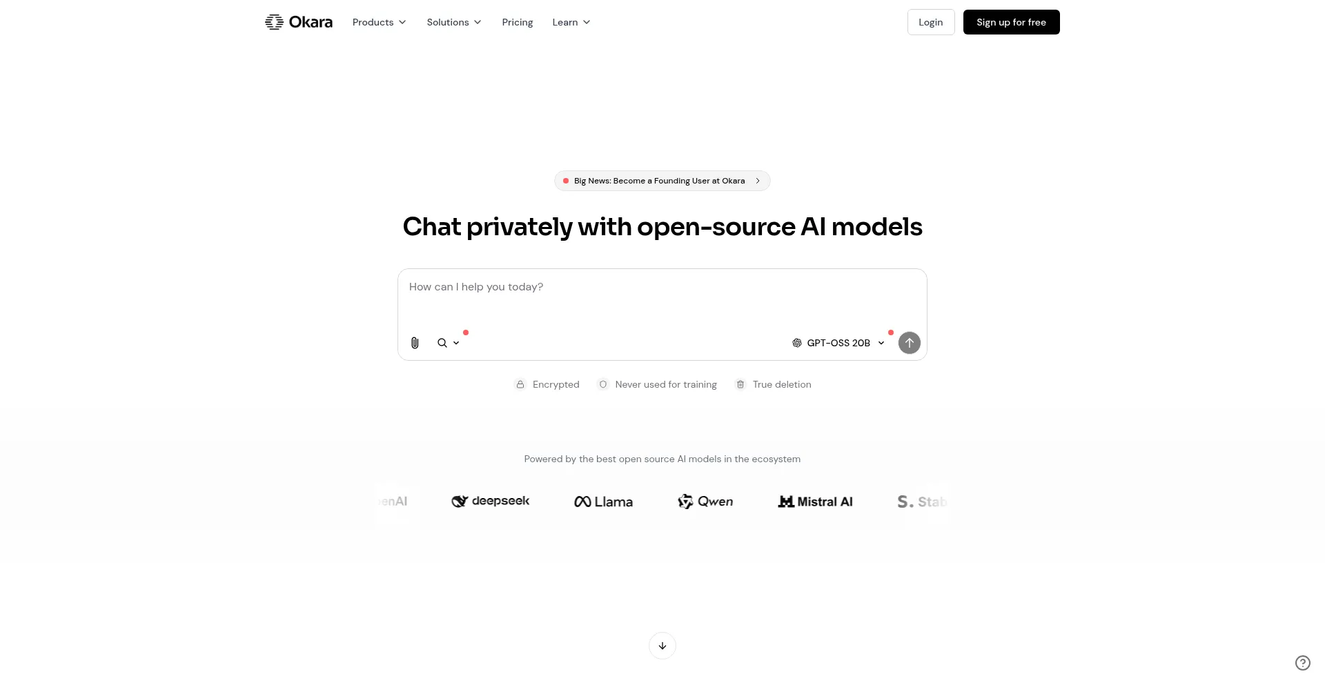 Chat privately with open-source AI models on Okara. Switch between Llama, Mistral, DeepSeek & more in a secure workspace built for people who value privacy.