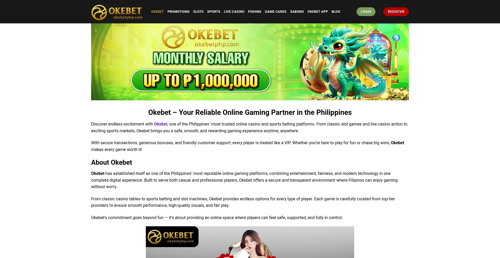 Okebet is the trusted online gaming platform in the Philippines. Enjoy casino, slots, and sports betting with fast deposits and withdrawals. Join Okebet now!