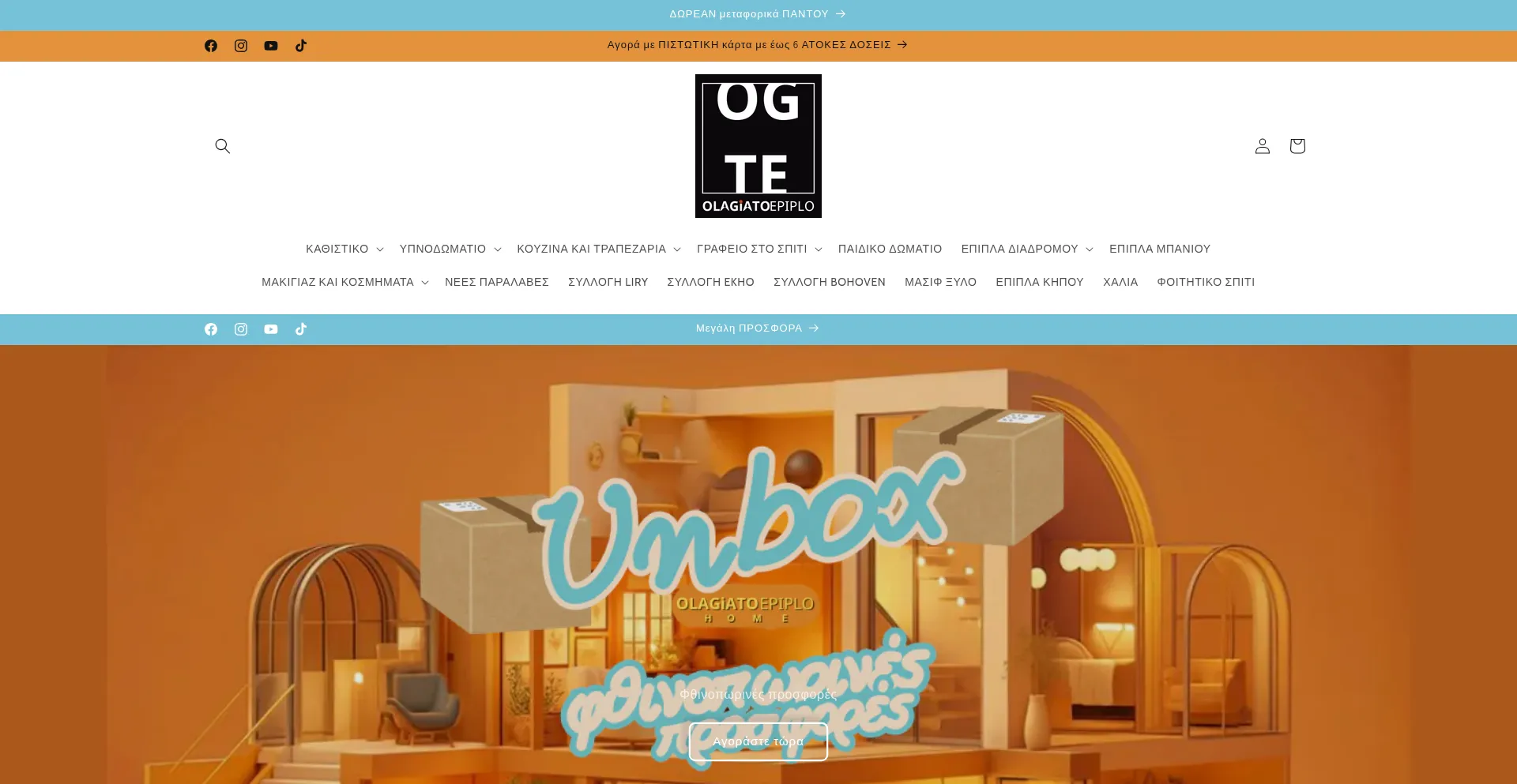 The olagiatoepiplo.gr website utilizes free e-commerce platform solutions, which may indicate cost-conscious operations but could also suggest limitations in security features, customer support, or advanced functionality compared to enterprise-grade solutions.