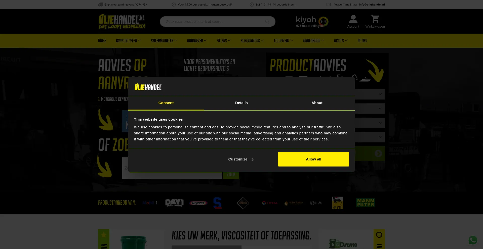The website implements cookie consent mechanisms in compliance with privacy regulations such as GDPR or CCPA. This demonstrates that oliehandel.nl adheres to data protection standards and provides users with control over personal data collection practices.